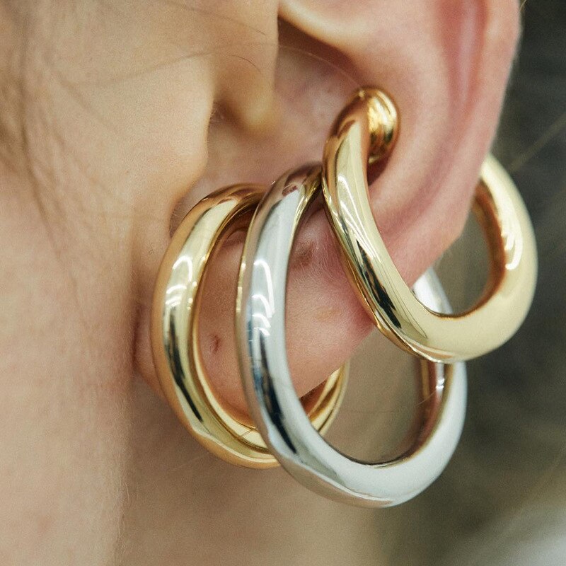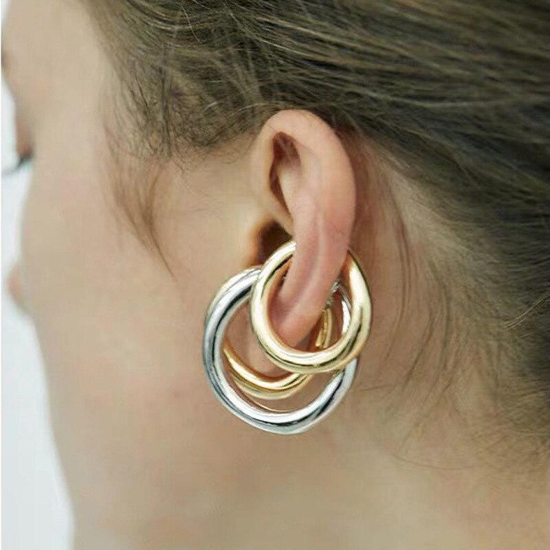 Pendientes de moda: pendientes de clip con forma de puño de oreja, color dorado y plateado, estilo punk rock, asimétricos, circulares, sin perforaciones, para mujer, joyería de fiesta.