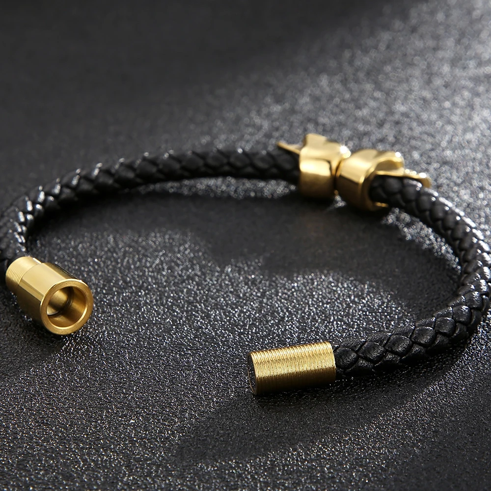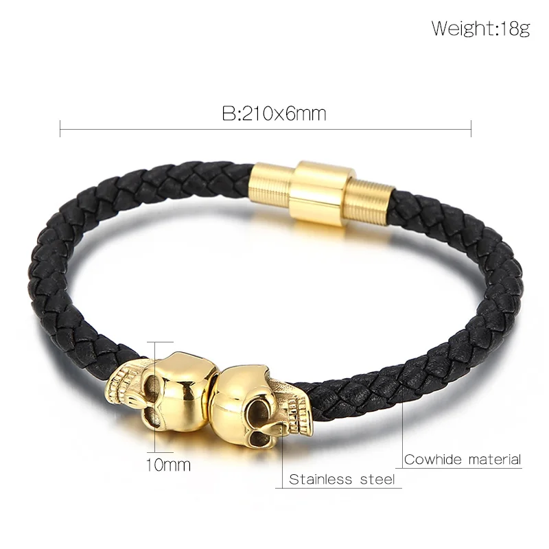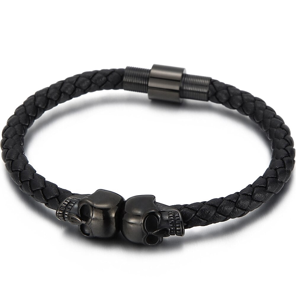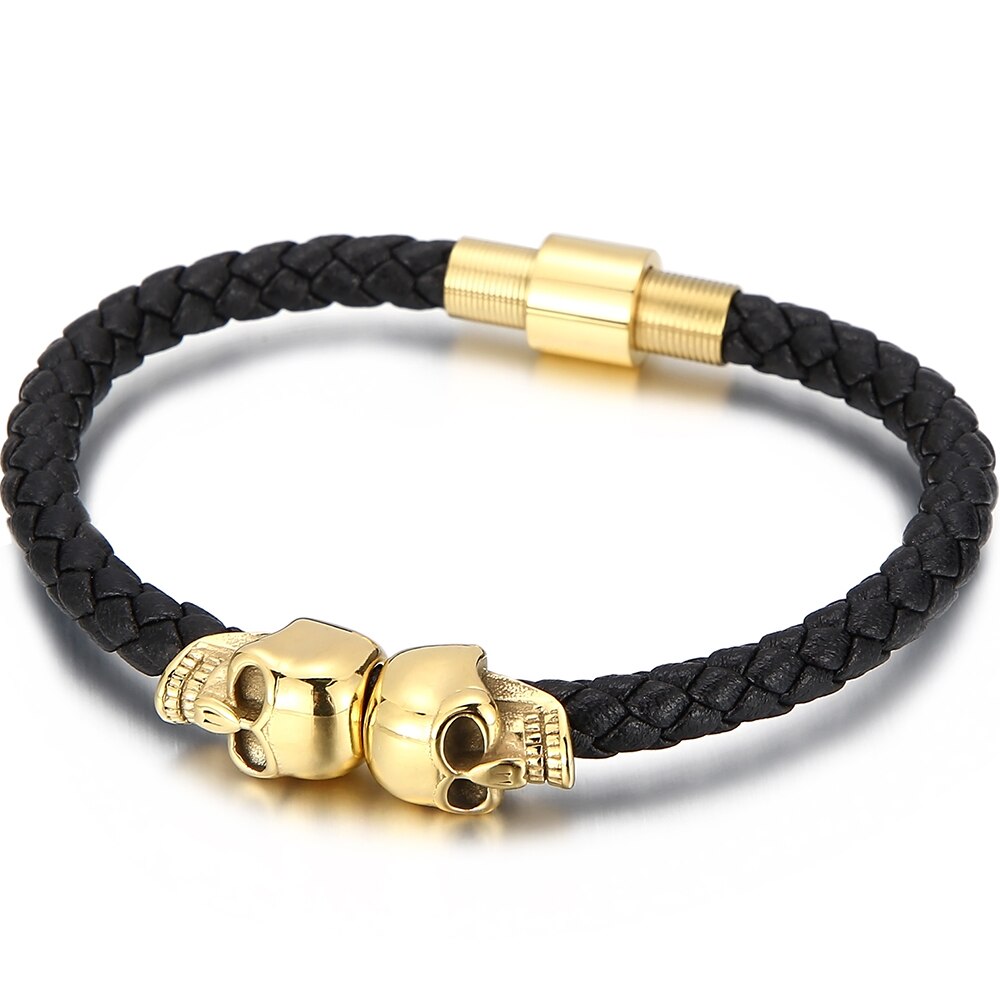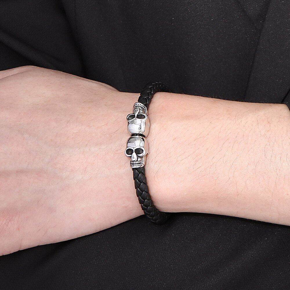 Pulsera de cuero genuino con dije de punk rock para hombre, brazalete de calavera para hombre, cierre magnético de acero inoxidable, regalo de cumpleaños para novio