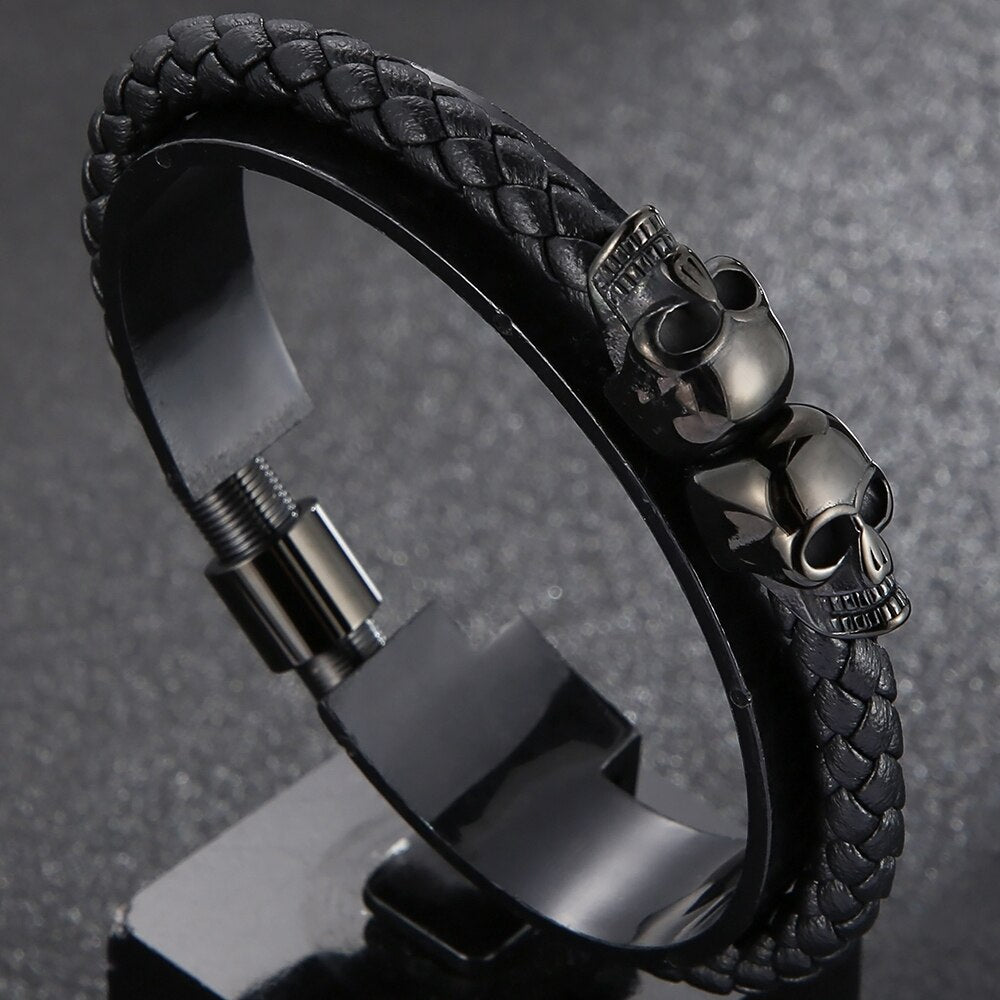 Pulsera de cuero genuino con dije de punk rock para hombre, brazalete con calavera.