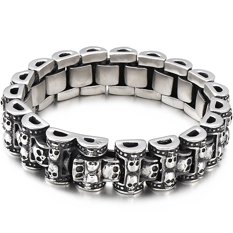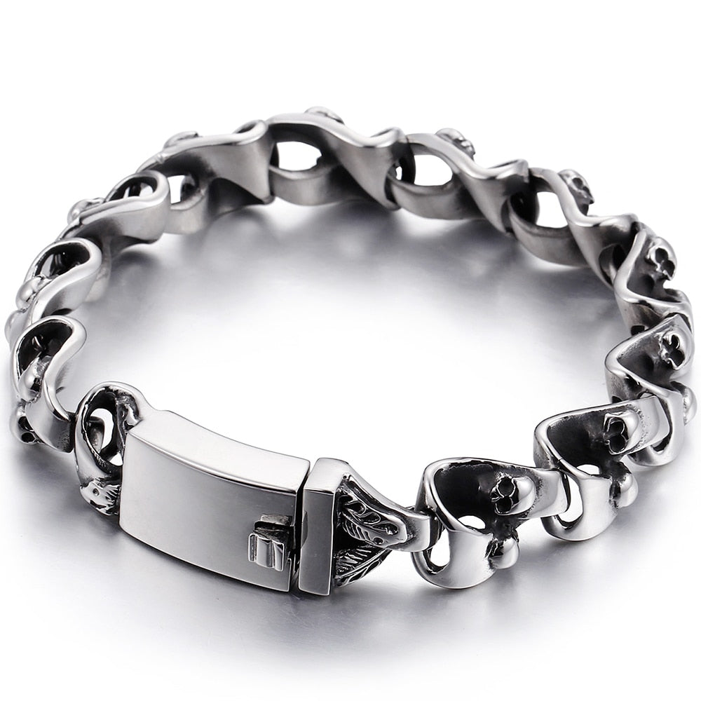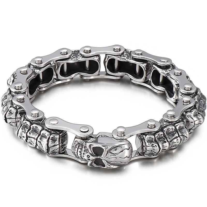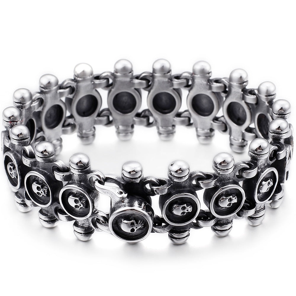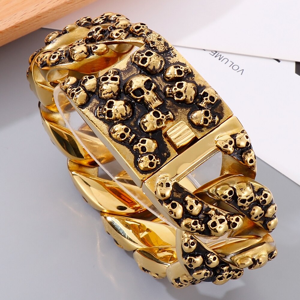 Pulsera de hombre punk rock de acero inoxidable macizo con cadena ancha de calavera para hombre