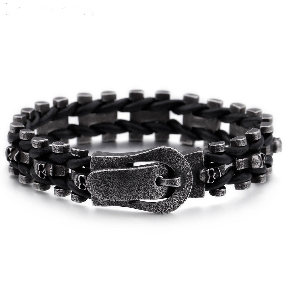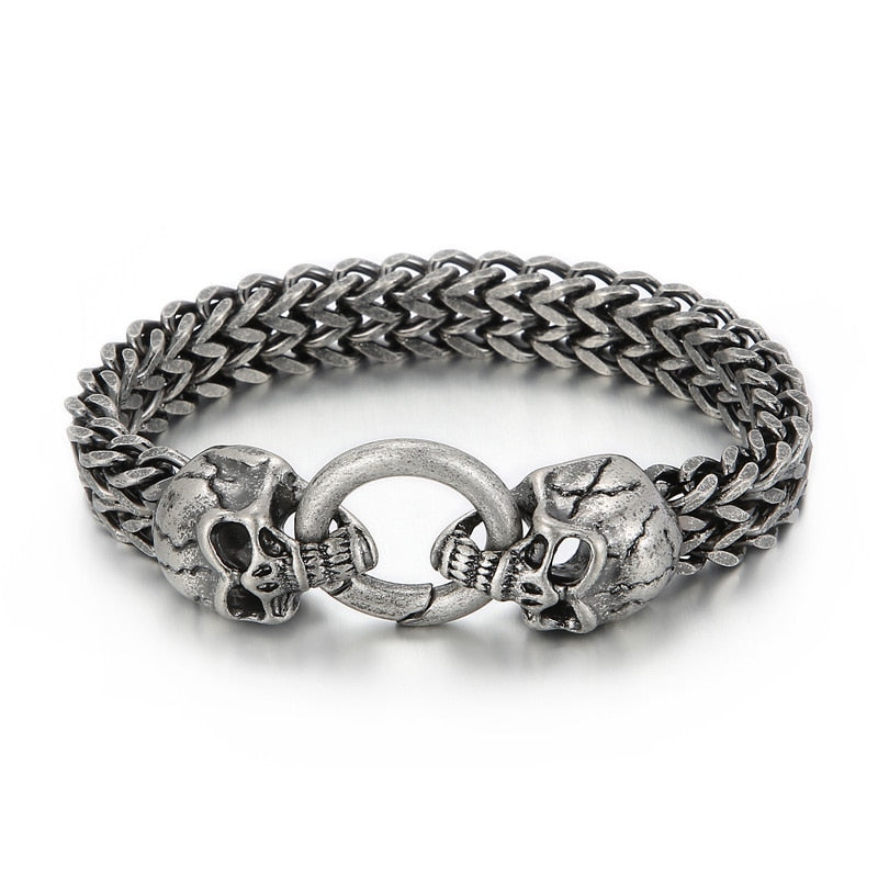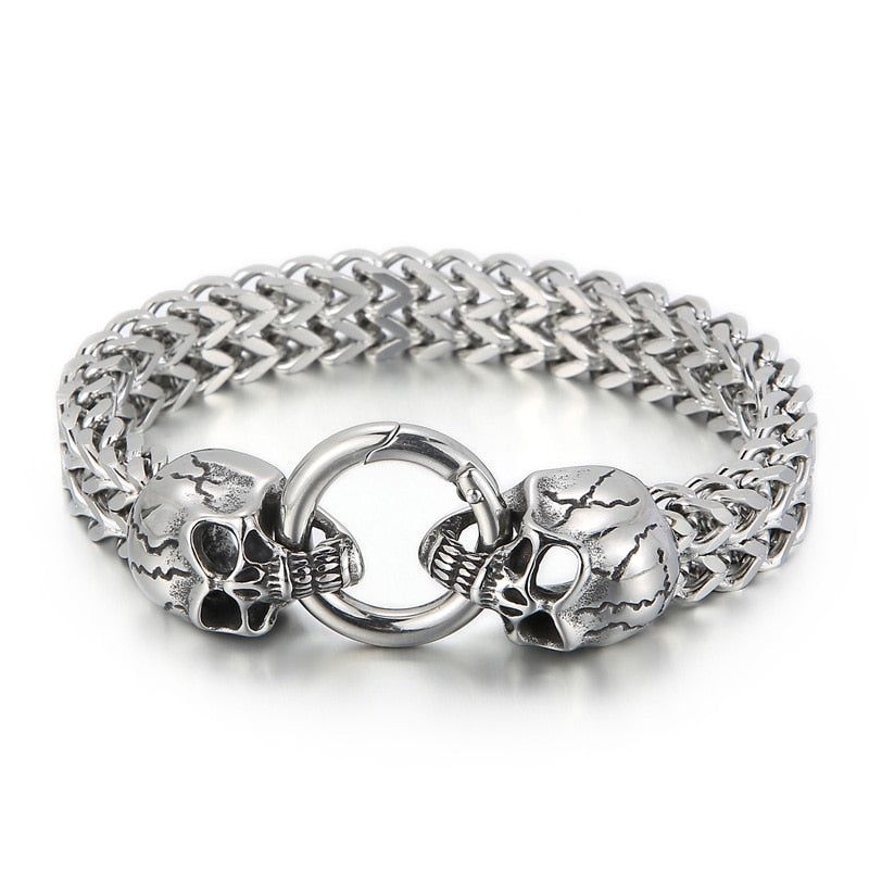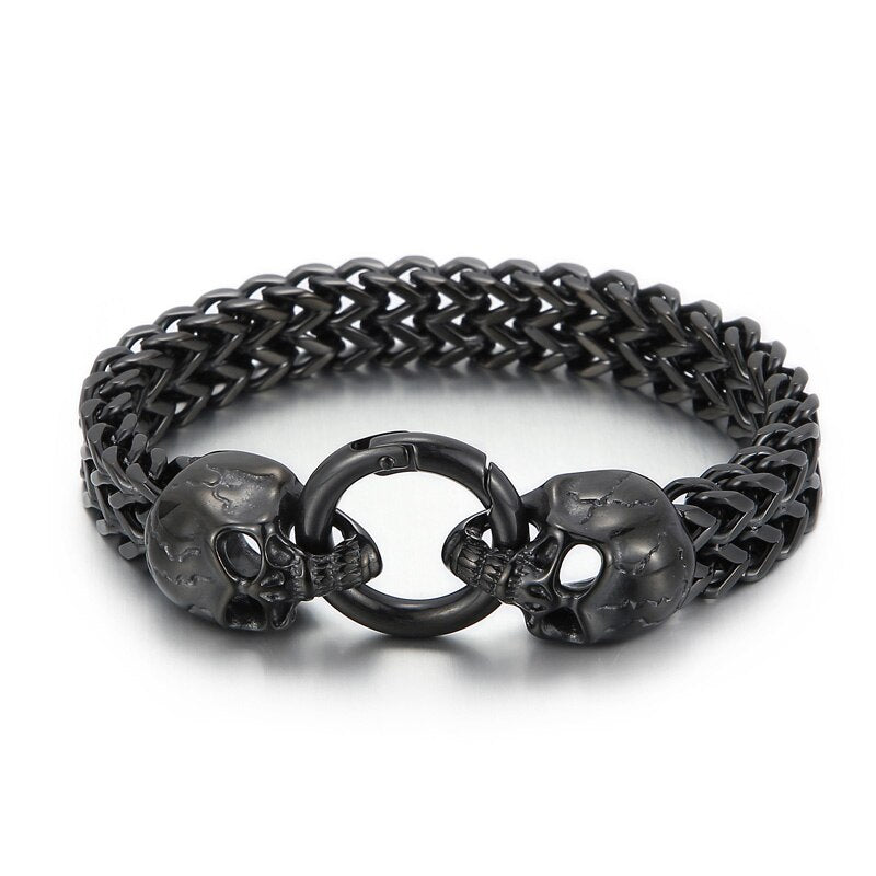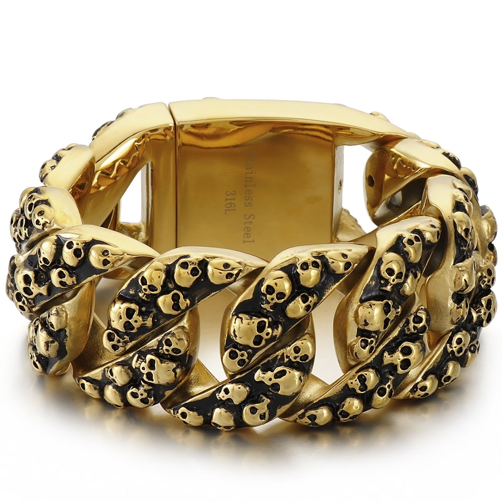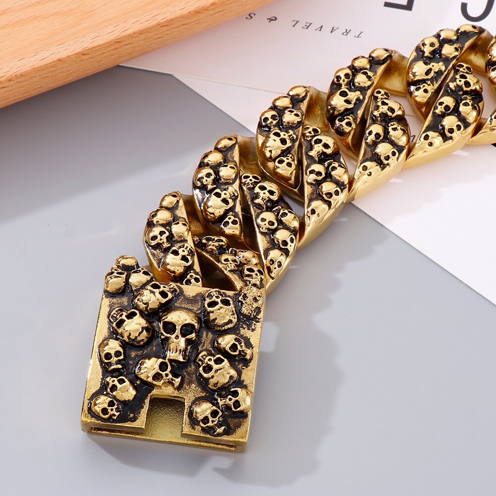 Pulsera de hombre punk rock de acero inoxidable macizo con cadena ancha de calavera para hombre