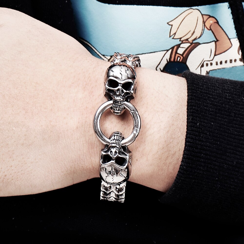 Pulseras de punk rock para hombre, de acero inoxidable, con calavera de 12 mm y 8,7 pulgadas, con doble eslabón franco, cadena de eslabones, estilo motero, joyería masculina.