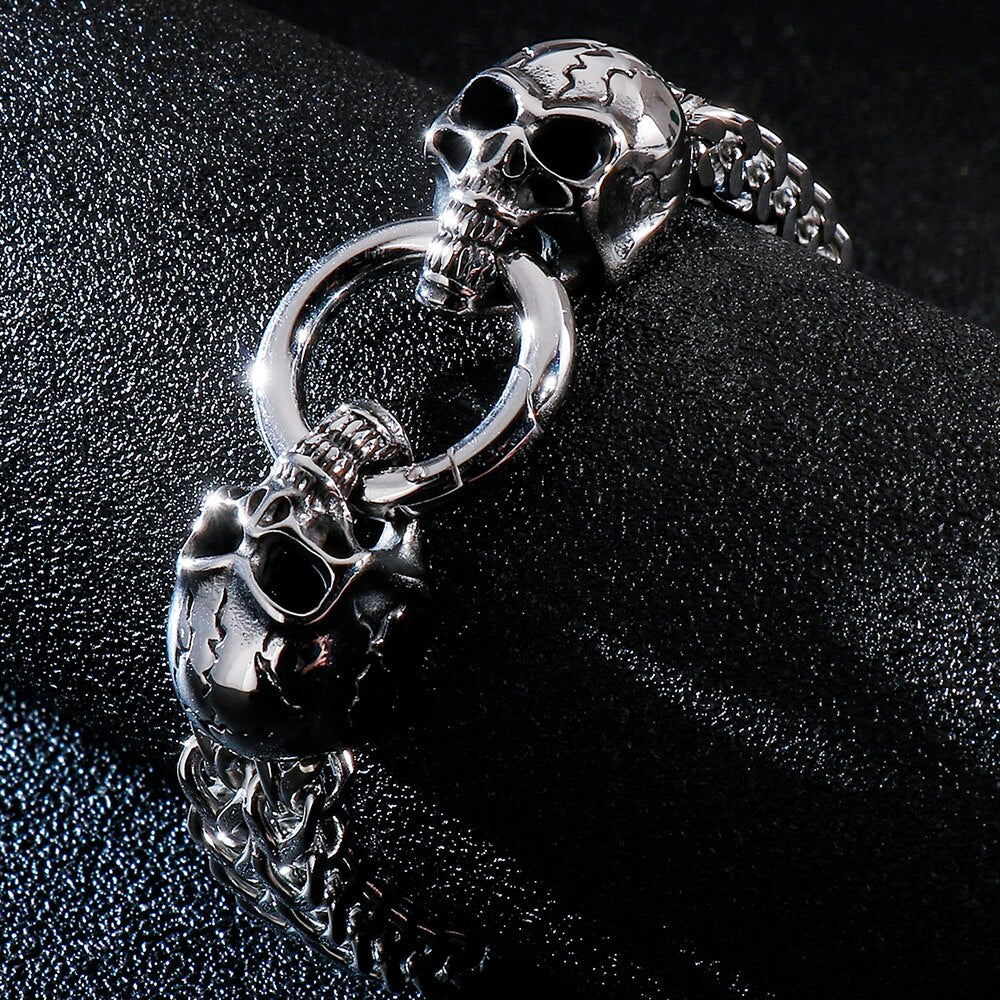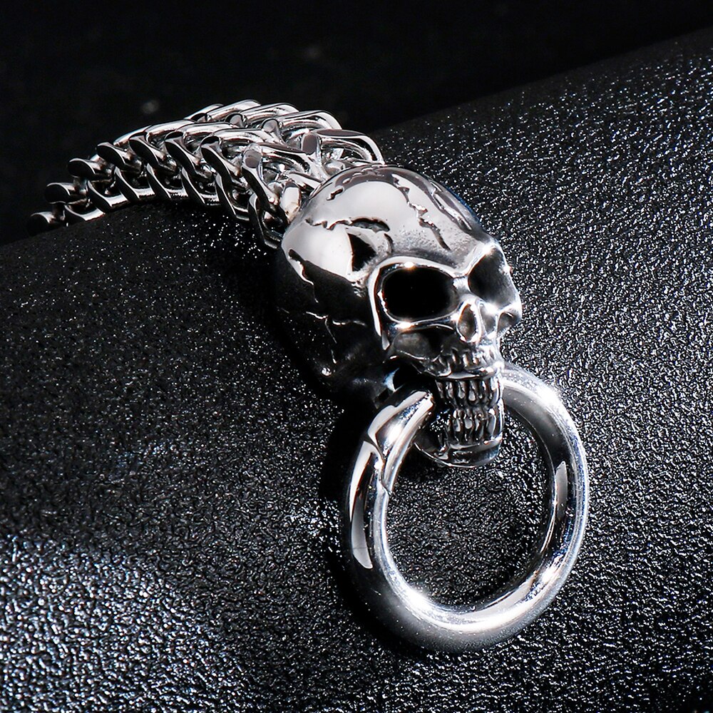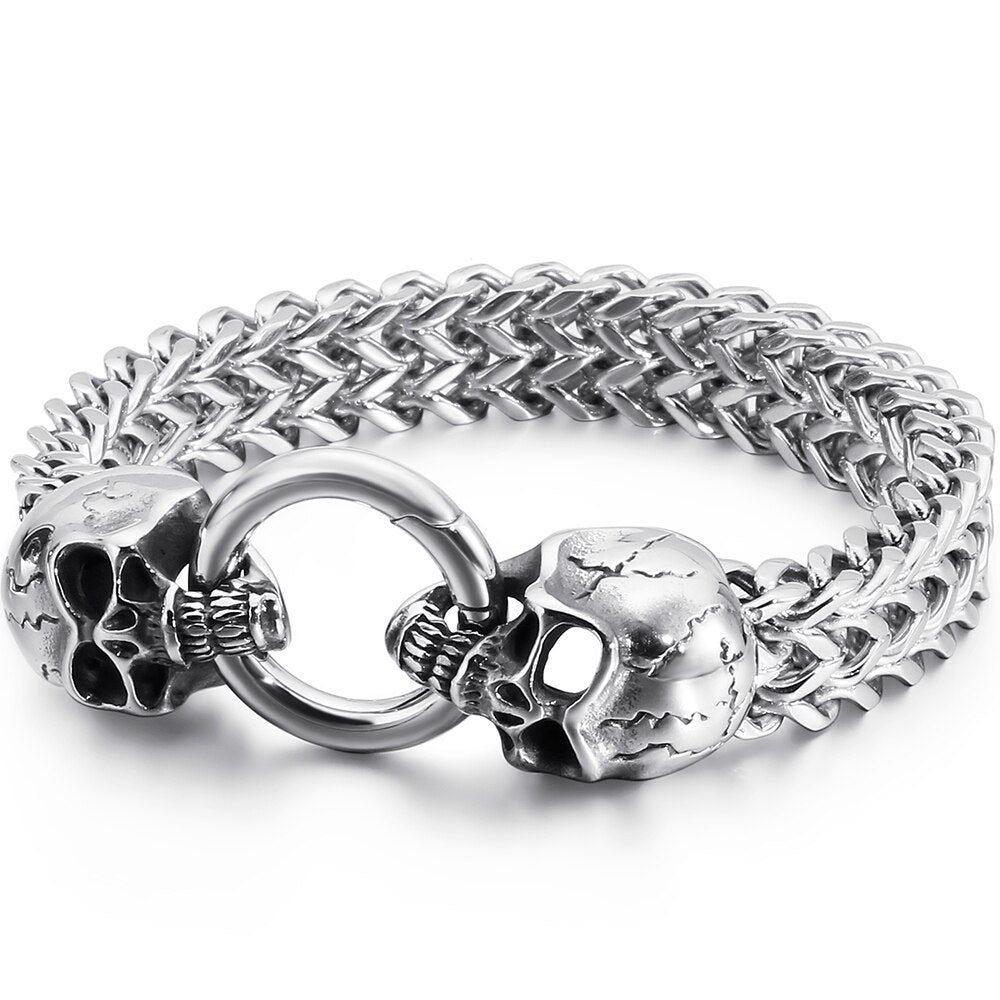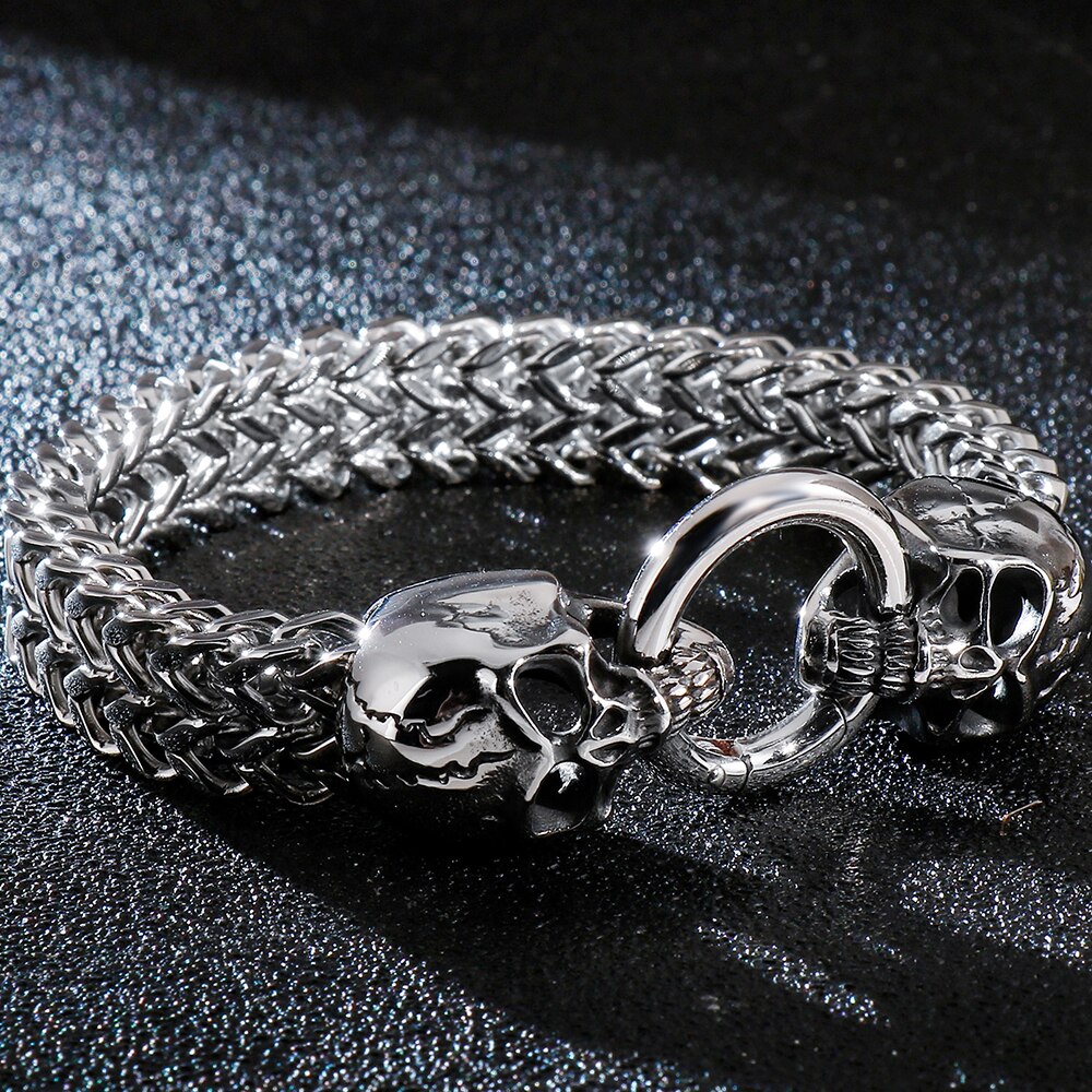 Pulseras de punk rock para hombre, de acero inoxidable, con calavera, 12 mm, 8,7 pulgadas, cadena de eslabones dobles.