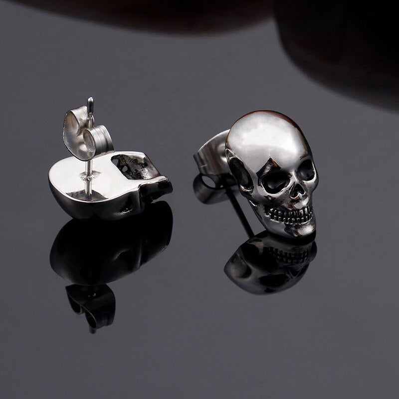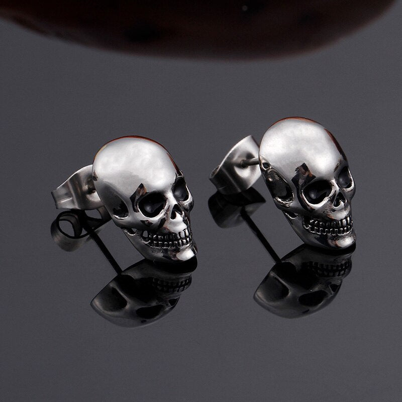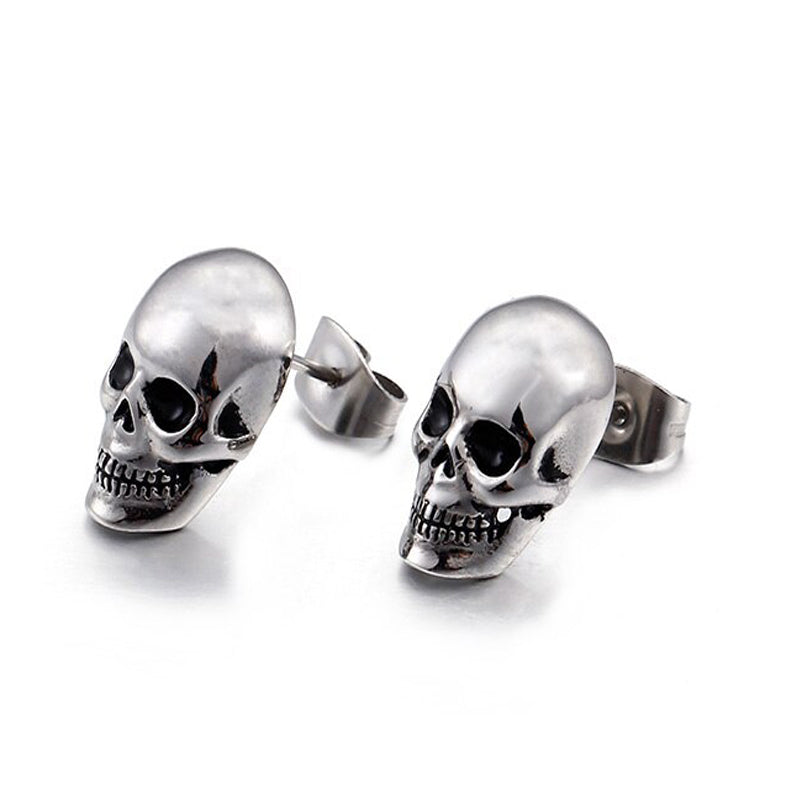 Pendientes pequeños de acero inoxidable con diseño de calavera punk rock para hombre y mujer.