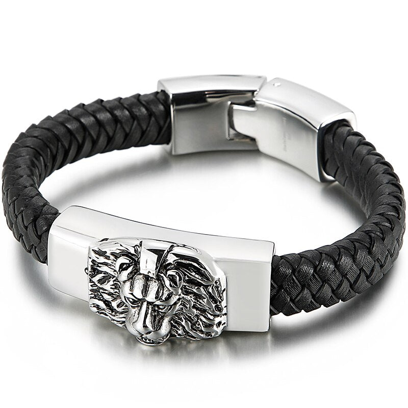 Pulsera de acero inoxidable con cabeza de león estilo punk rock para hombre