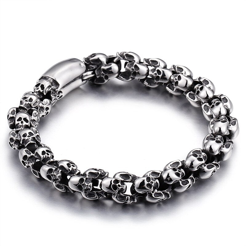 Pulsera de calavera punk rockera para hombre, de acero inoxidable pulido y cepillado, ideal como regalo de cumpleaños para mejores amigos.