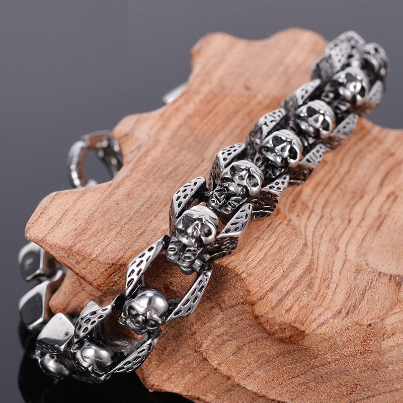 Pulsera de calavera punk rockera para hombre, de acero inoxidable 316L, resistente.