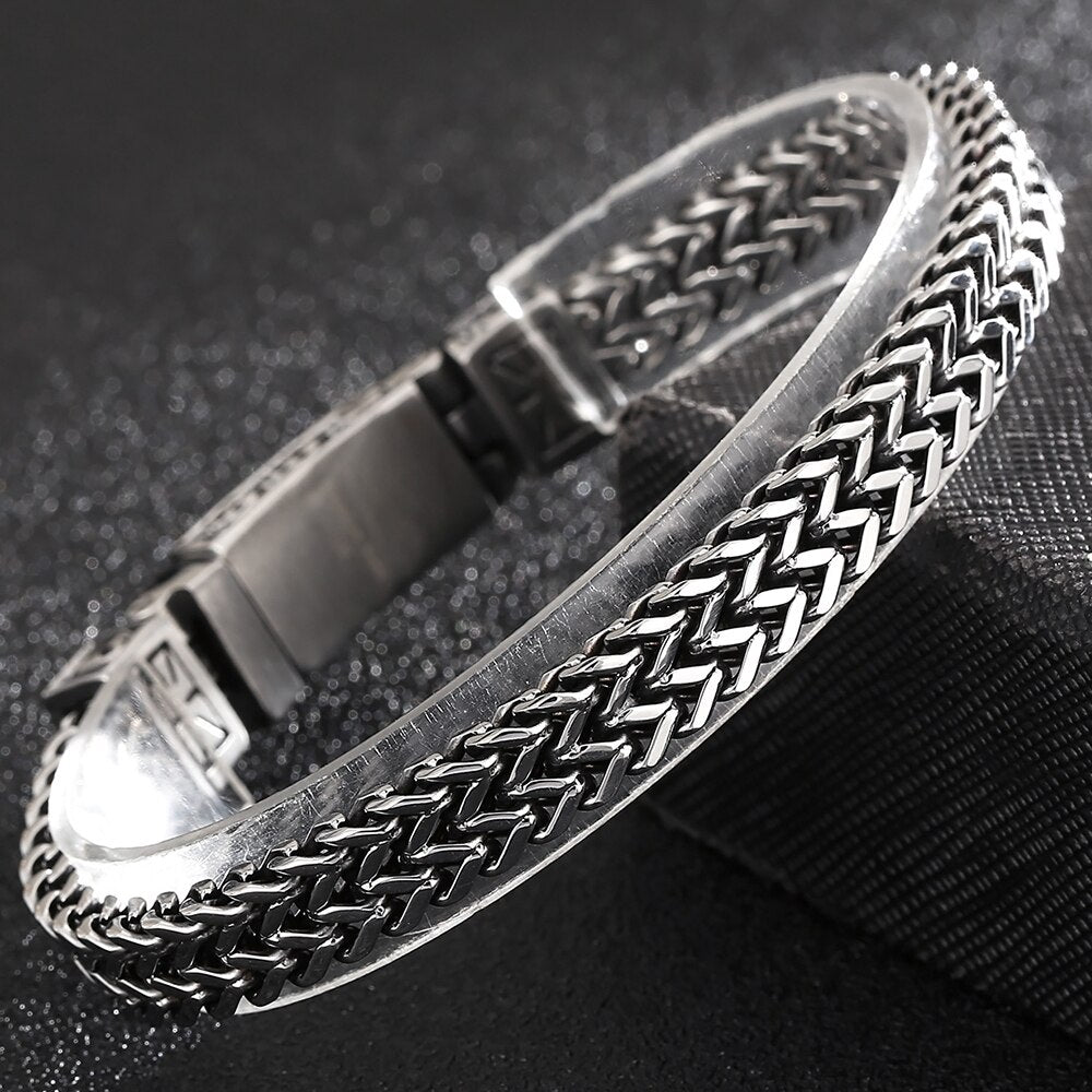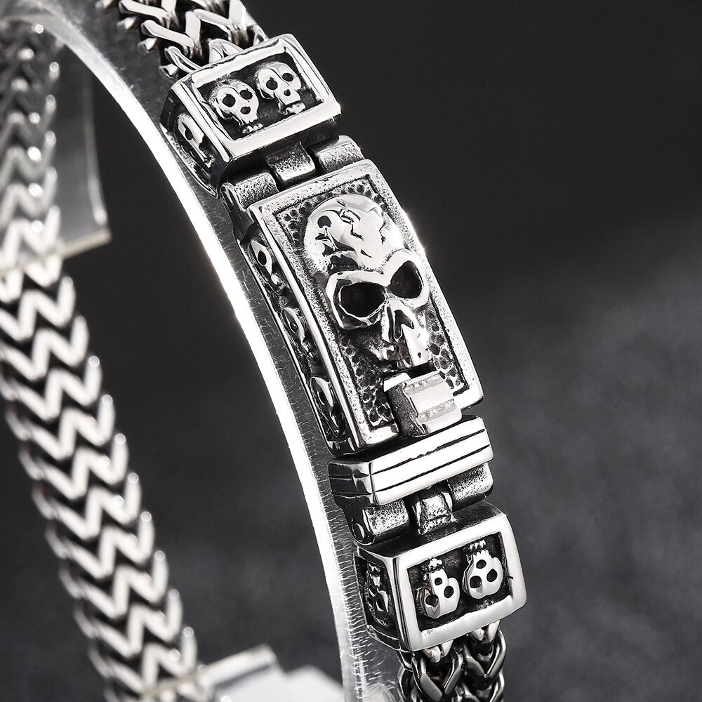 Pulsera de calavera punk para hombre, de acero inoxidable, con cadena de eslabones cuadrados de 8 mm, estilo franco