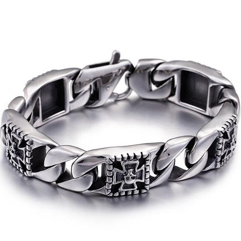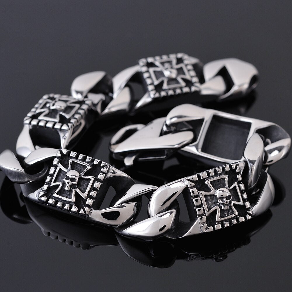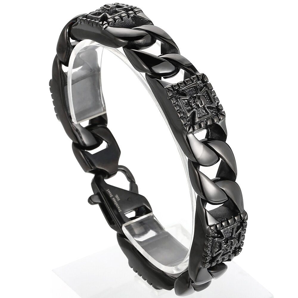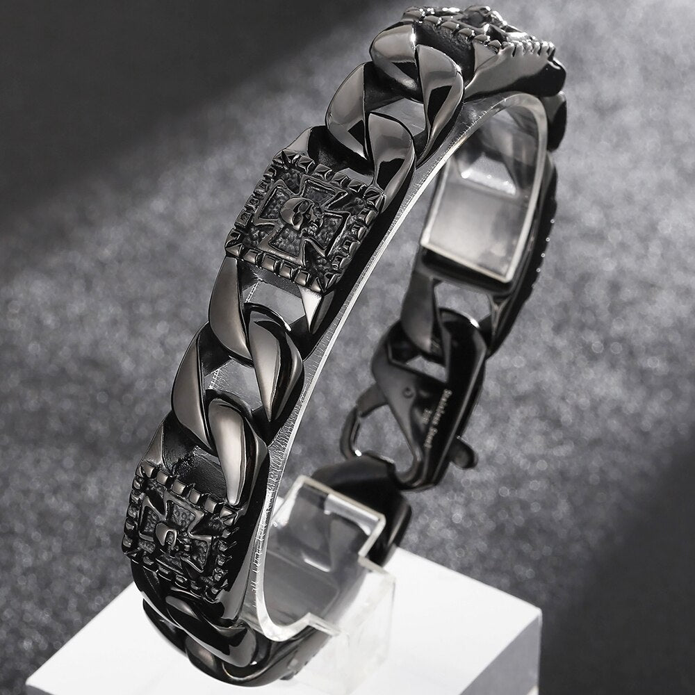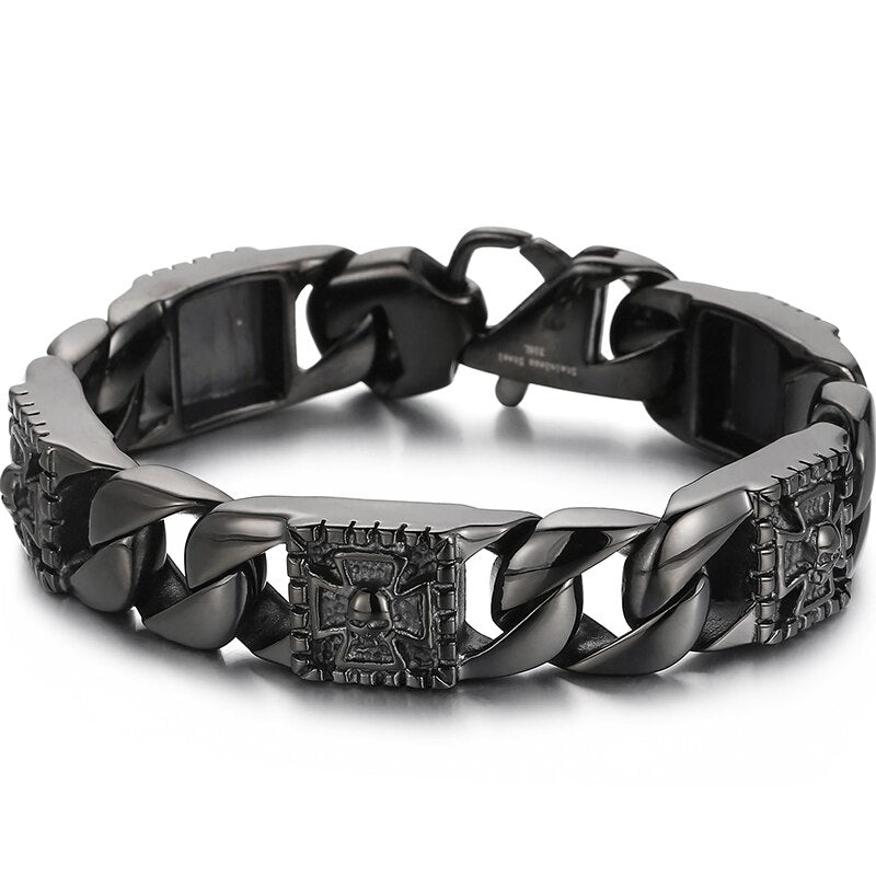 Pulsera de eslabones con cabeza de calavera punk para hombre, de acero inoxidable negro macizo, estilo retro, con cadena de eslabones, para muñeca de hombre, estilo motero.