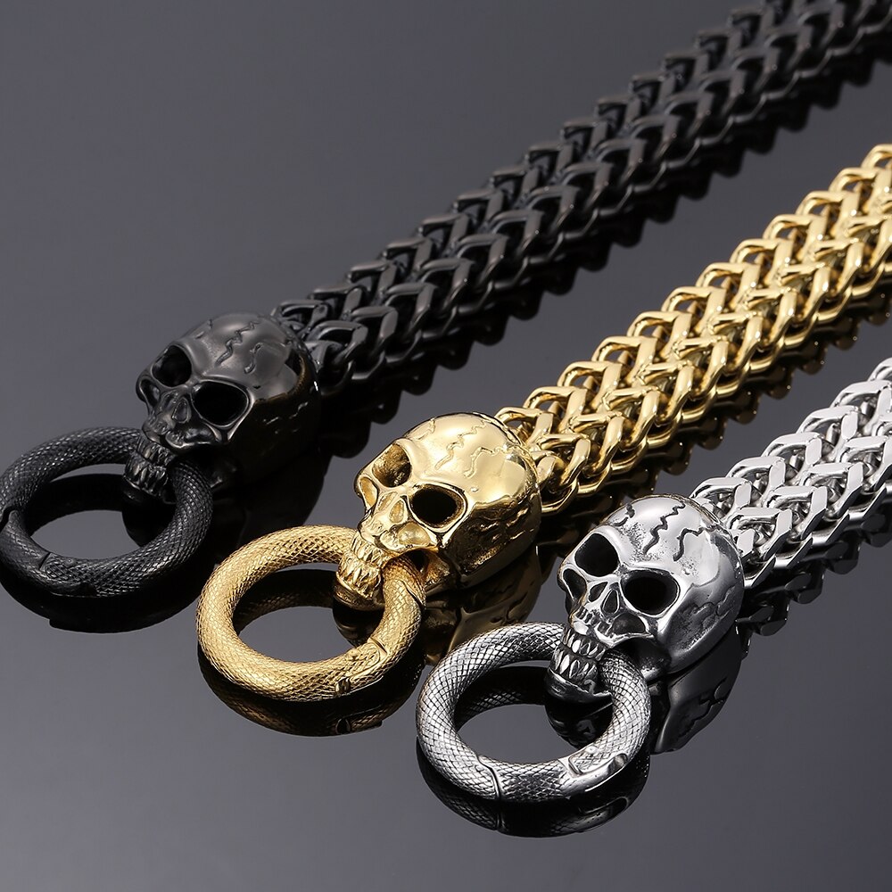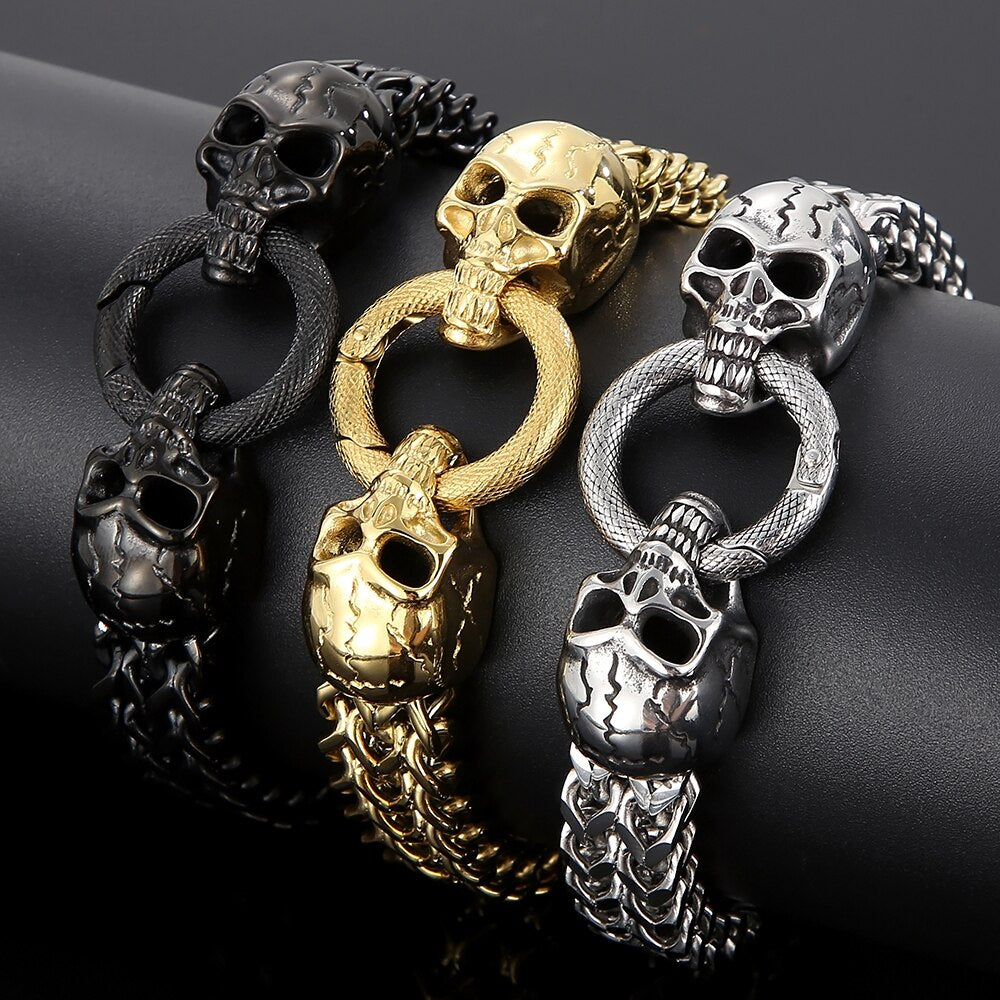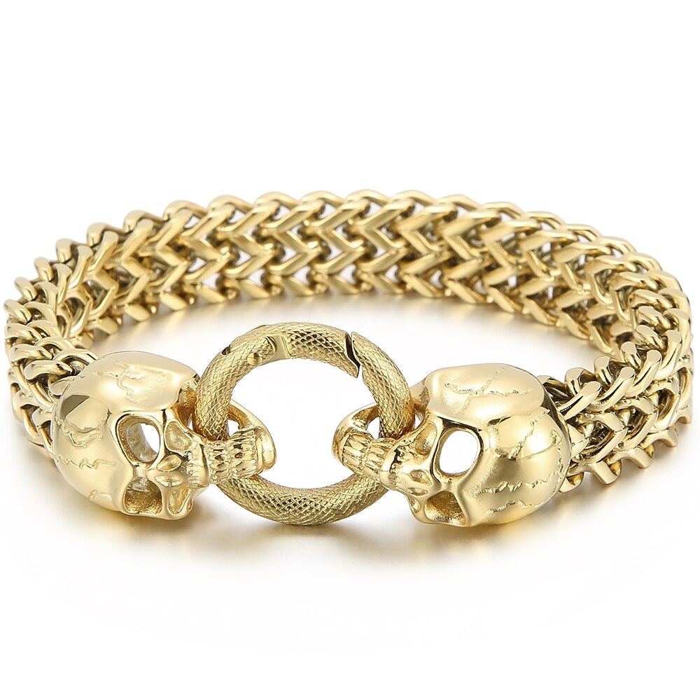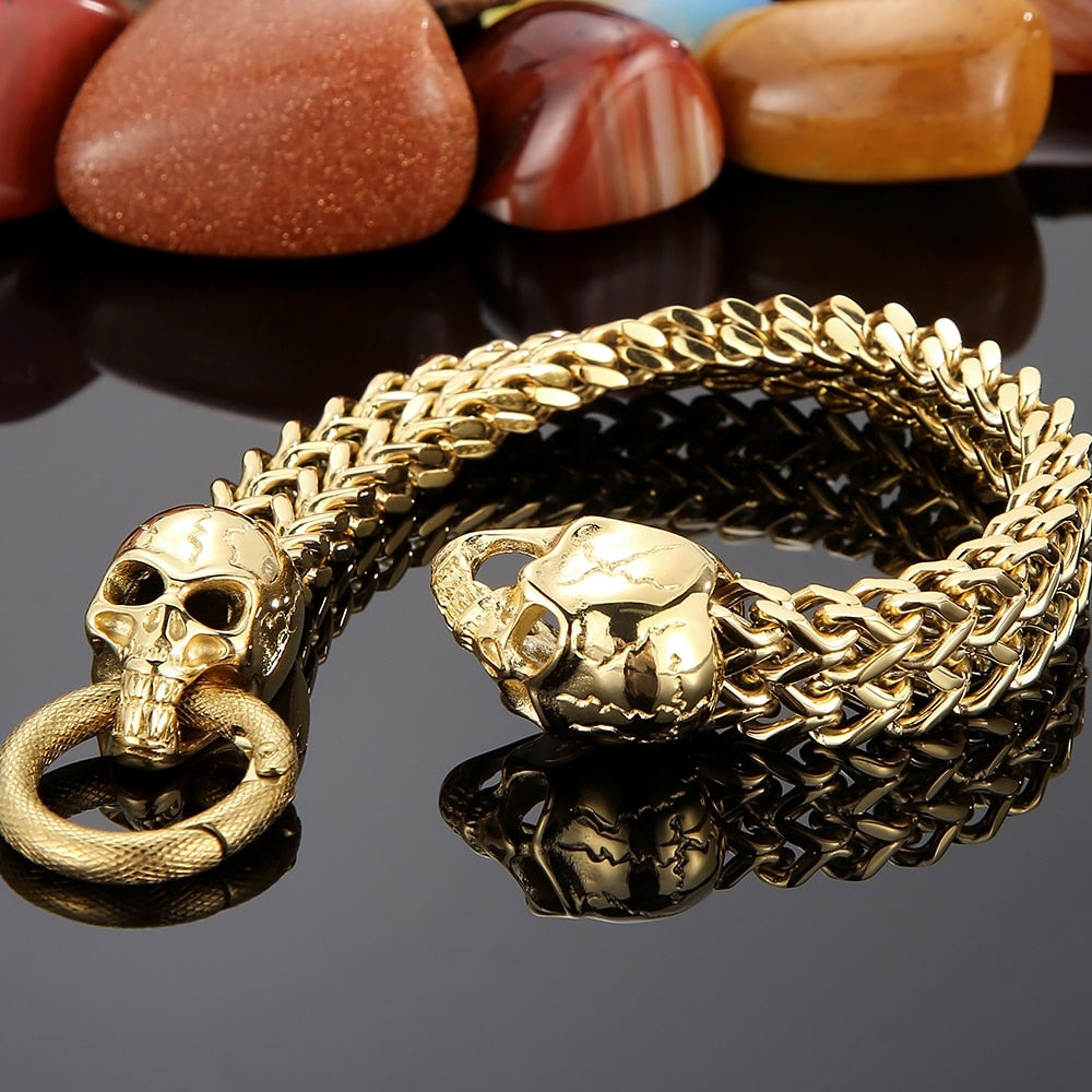 Pulsera de calavera punk para hombre, de acero inoxidable chapado en oro, joyería de Halloween, pulseras góticas de motociclista, brazalete para hombre