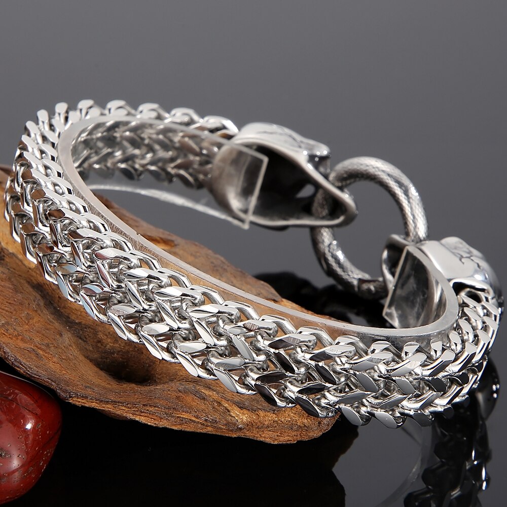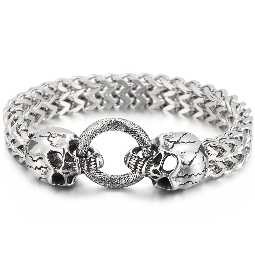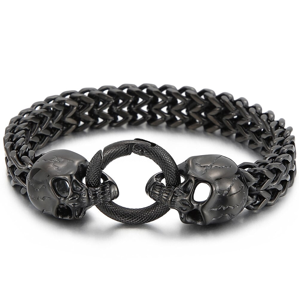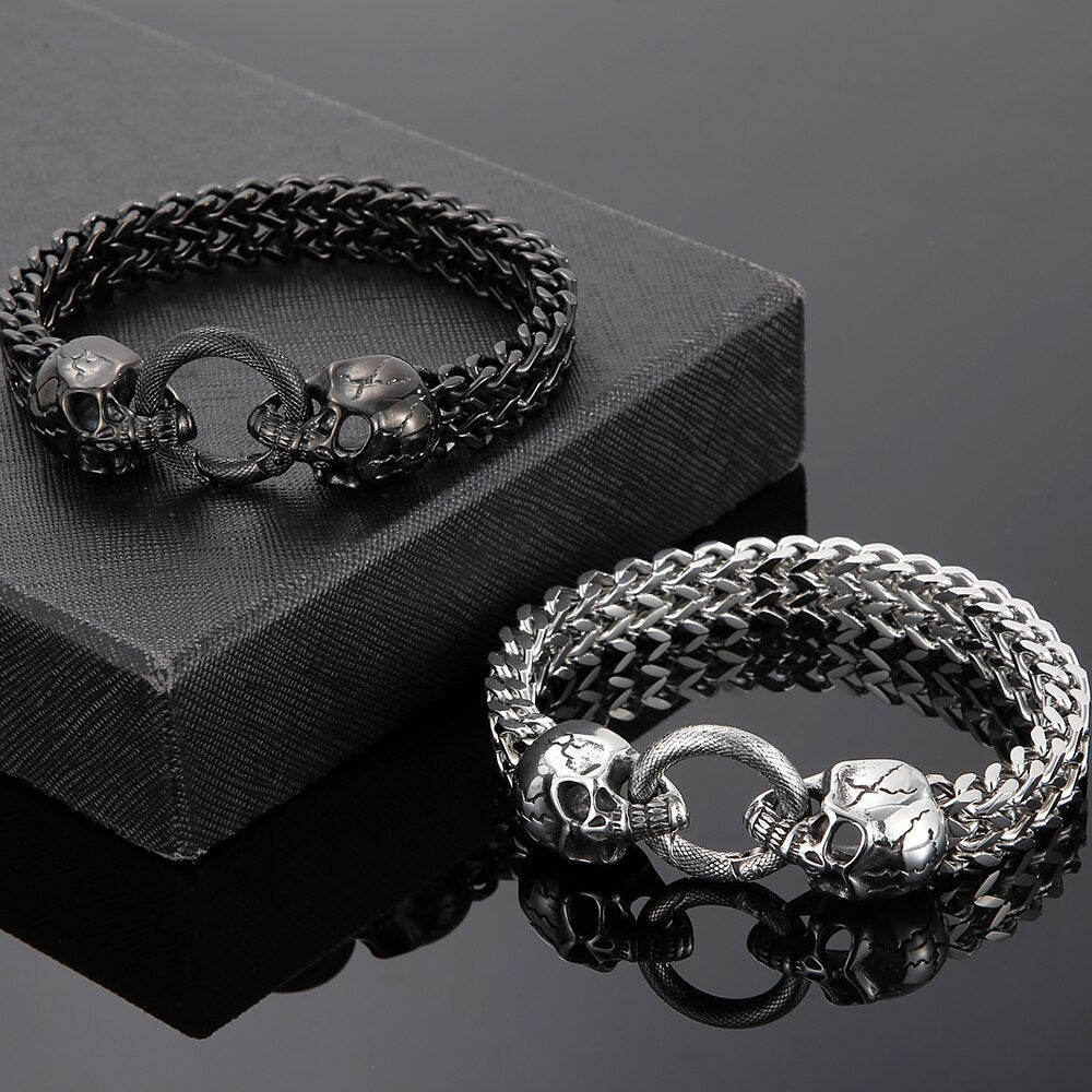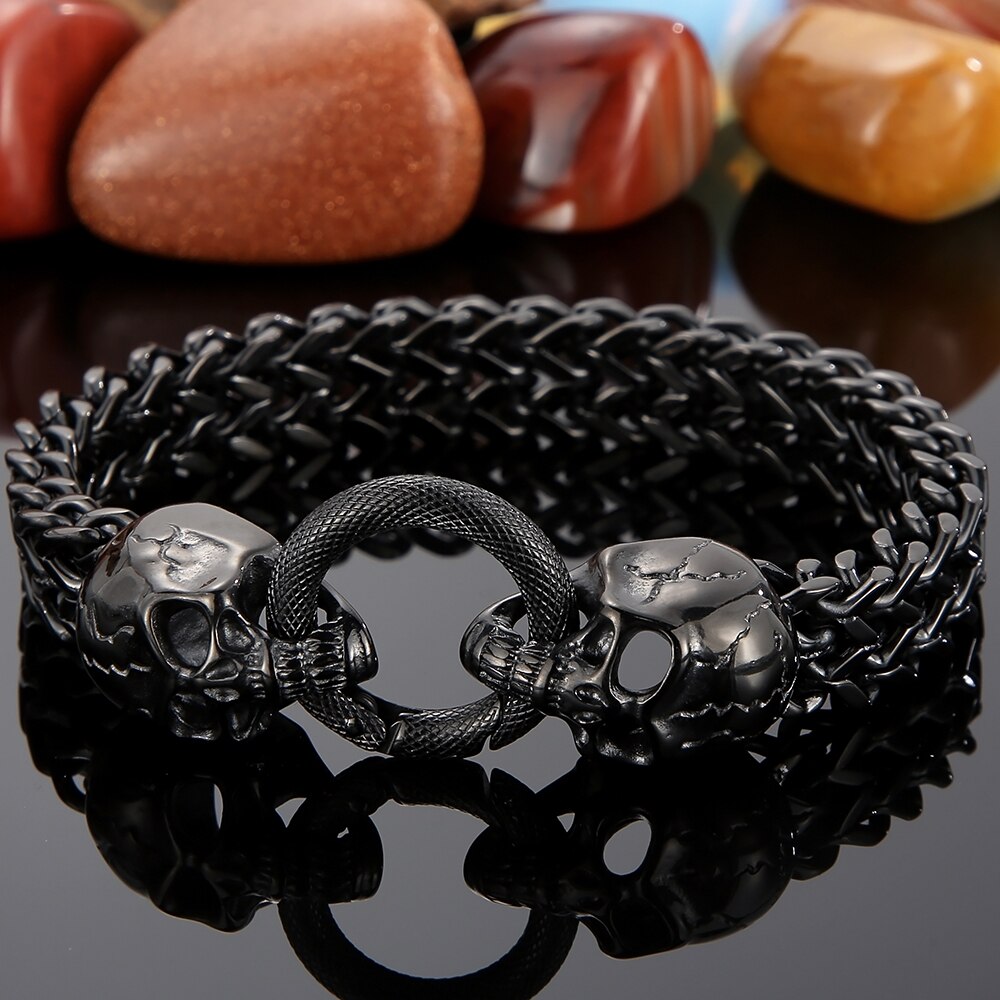 Pulsera de calavera punk para hombre, de acero inoxidable chapado en oro, joyería de Halloween, pulseras góticas de motociclista, brazalete para hombre