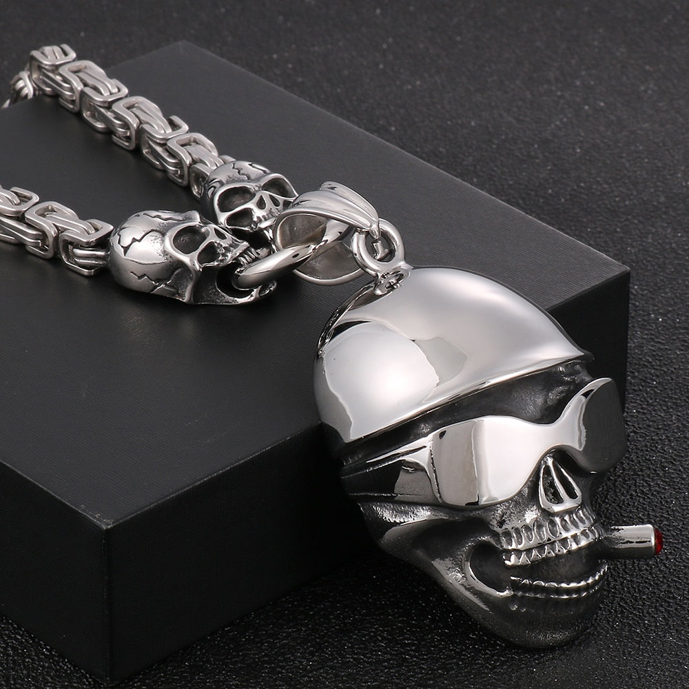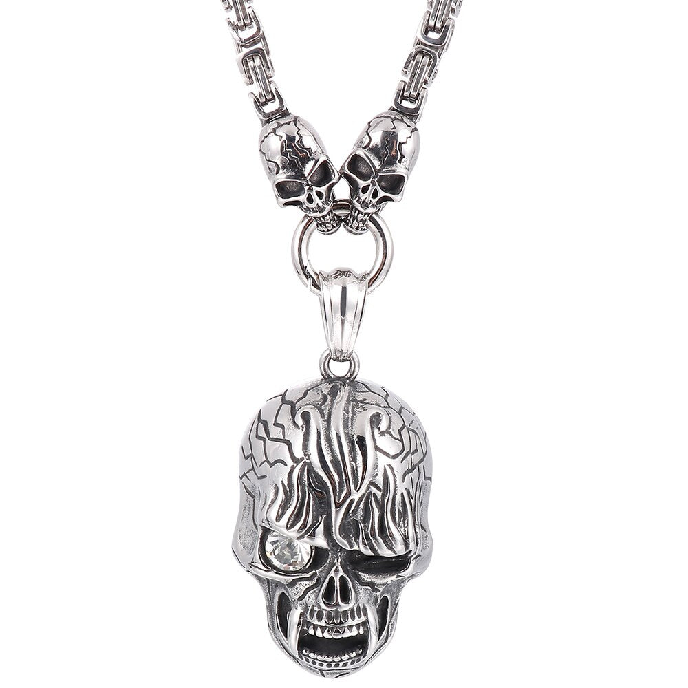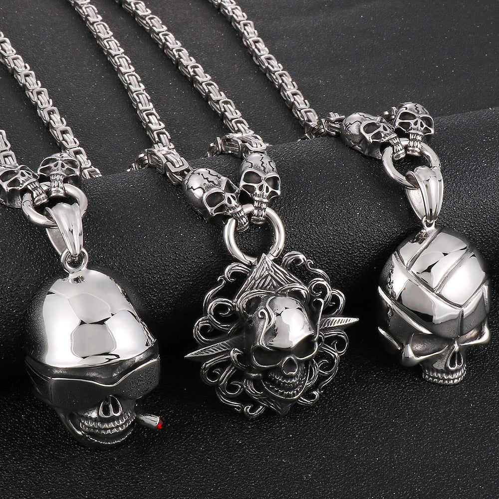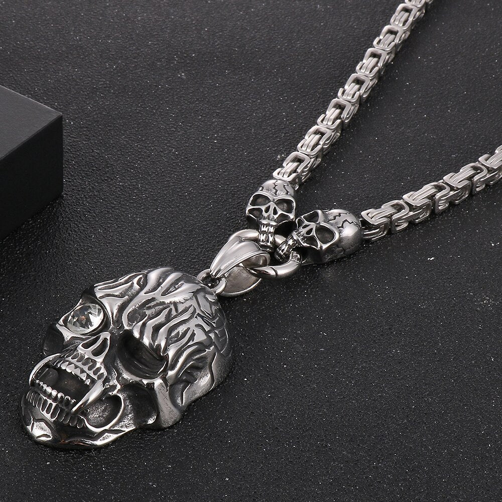 Collar con colgante de calavera punk para hombre, de acero inoxidable, con cadena de 45 a 72 cm de largo, ideal para Halloween.