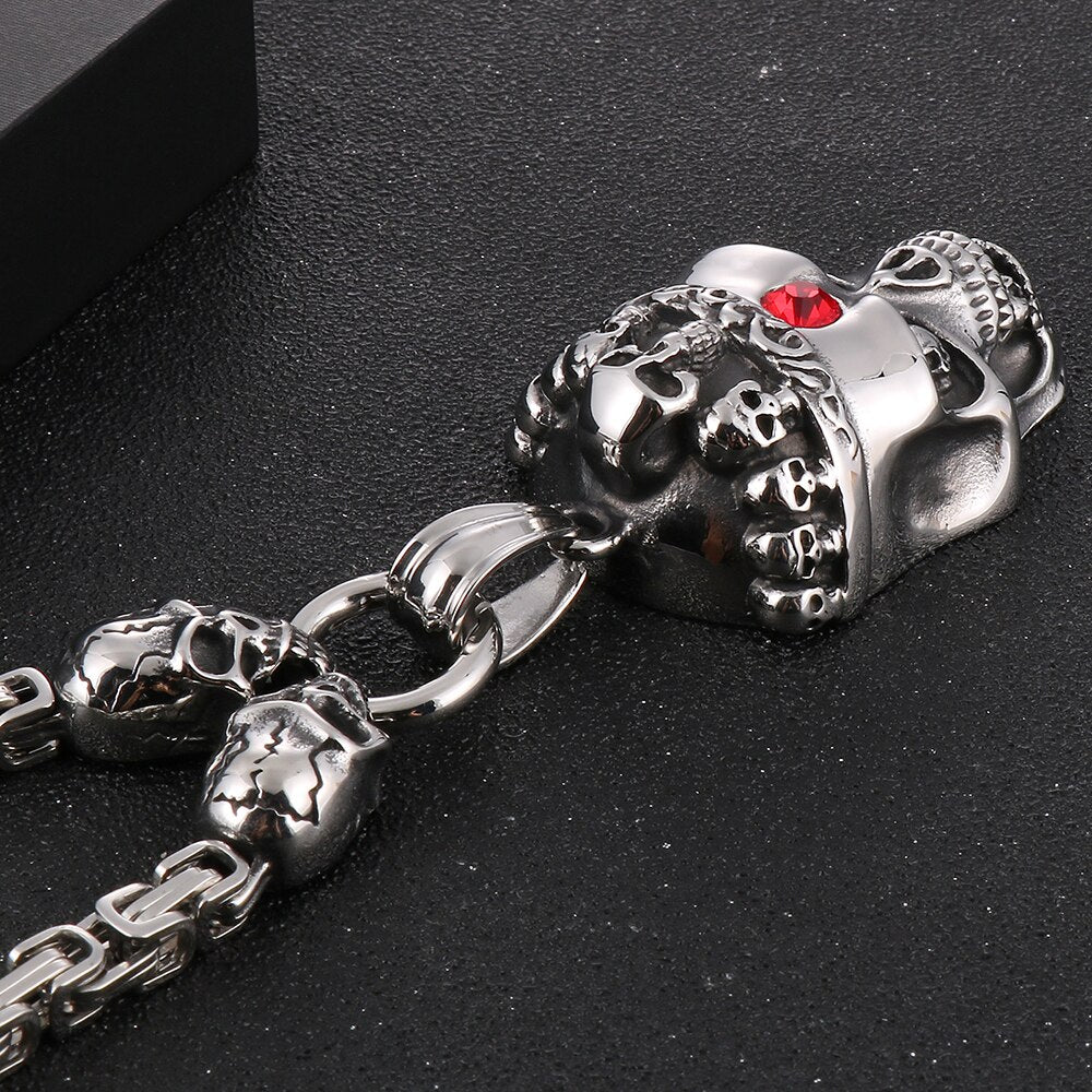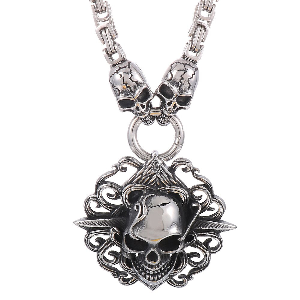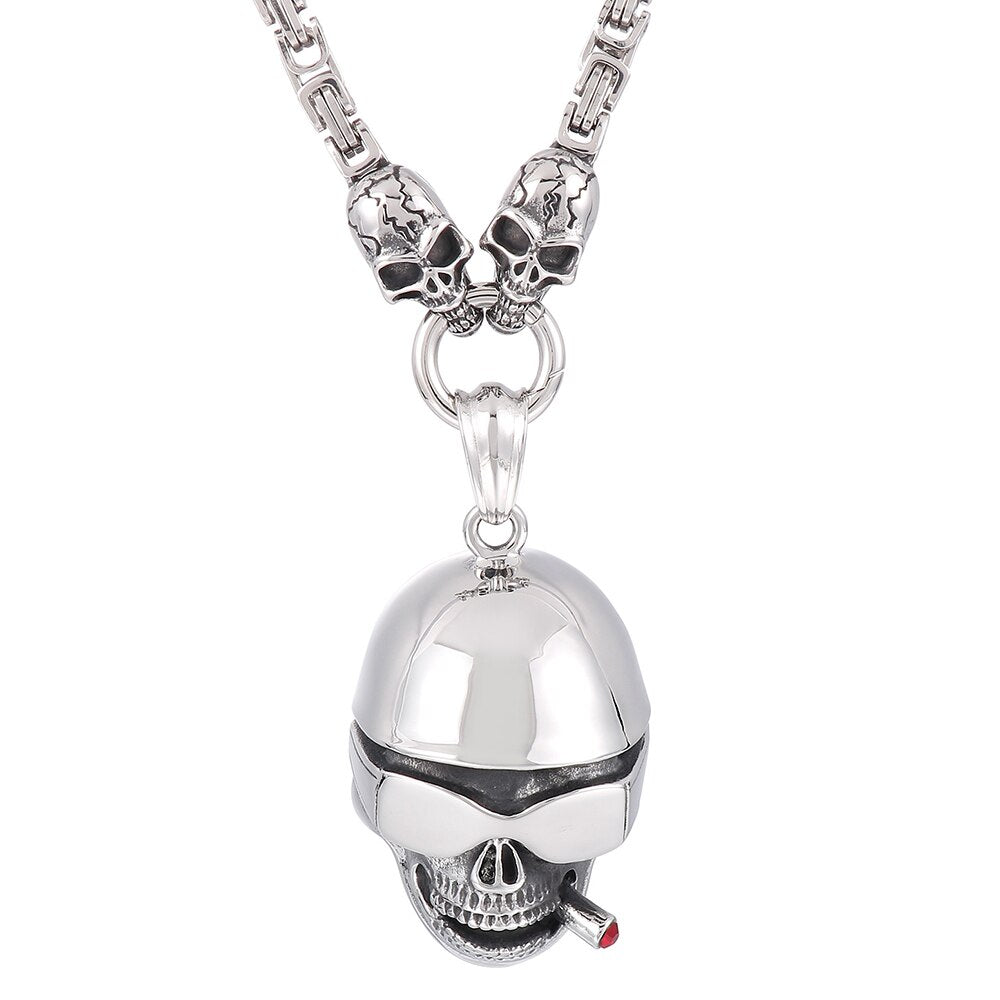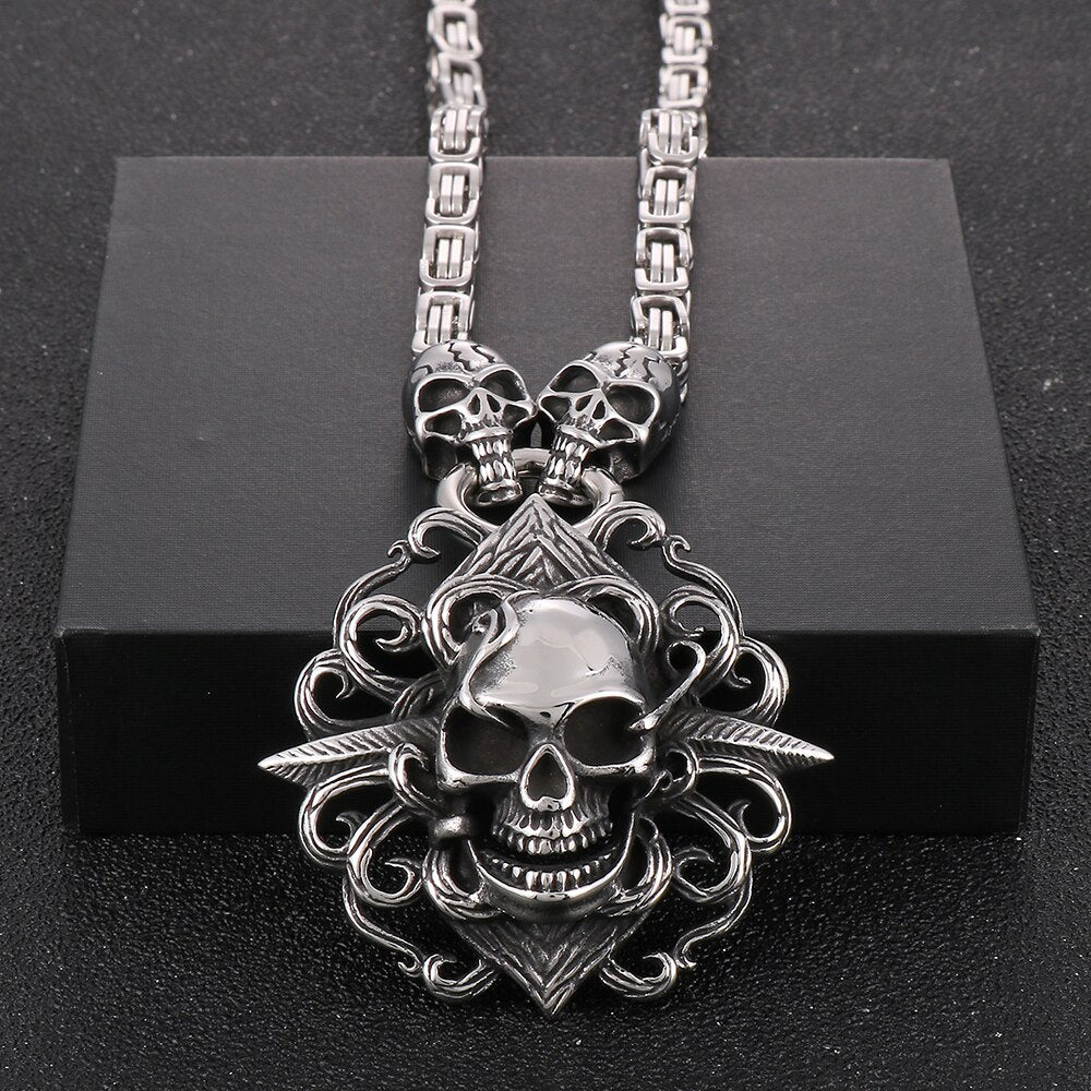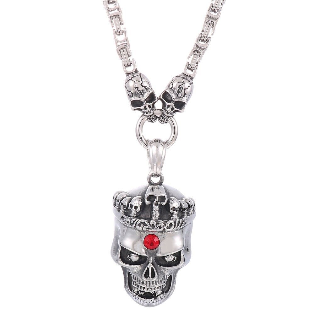 Collar con colgante de calavera punk para hombre, de acero inoxidable, con cadena de 45 a 72 cm de largo, ideal para Halloween.