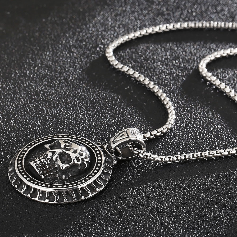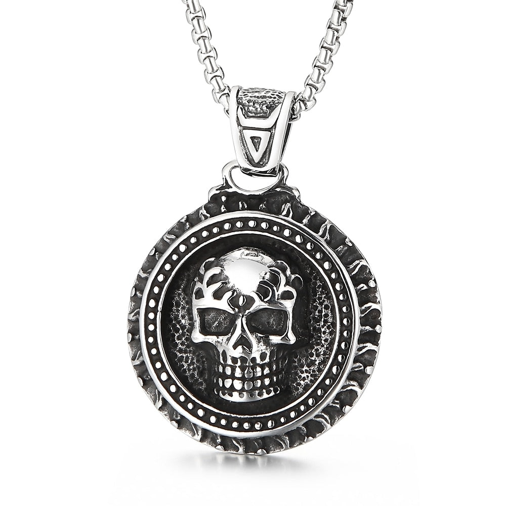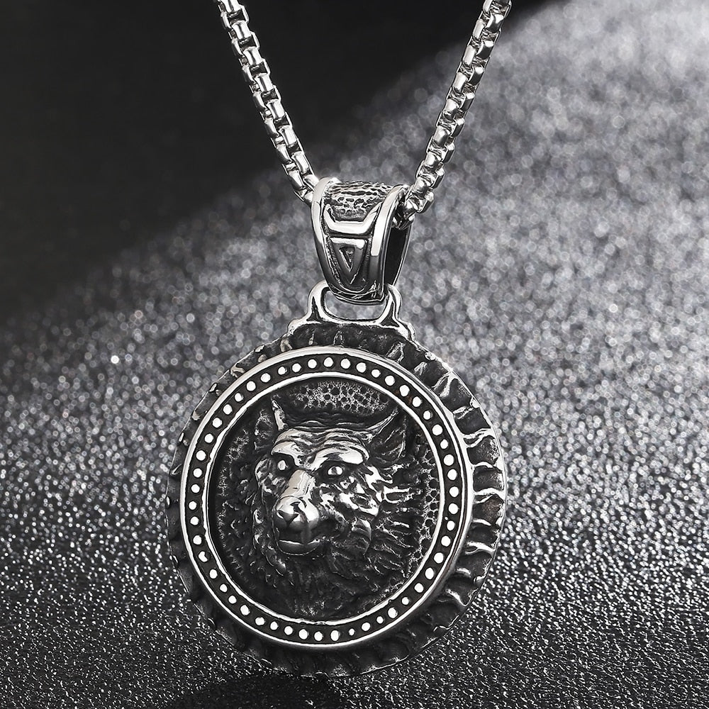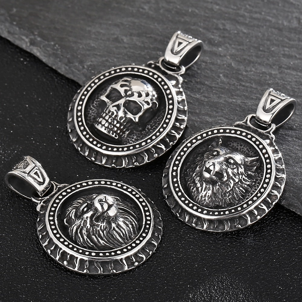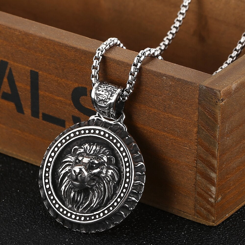 Collar con colgante de cabeza de león y calavera punk para hombre, de acero inoxidable, con cabeza de lobo, de 60 cm de largo, joyería vikinga de animales.