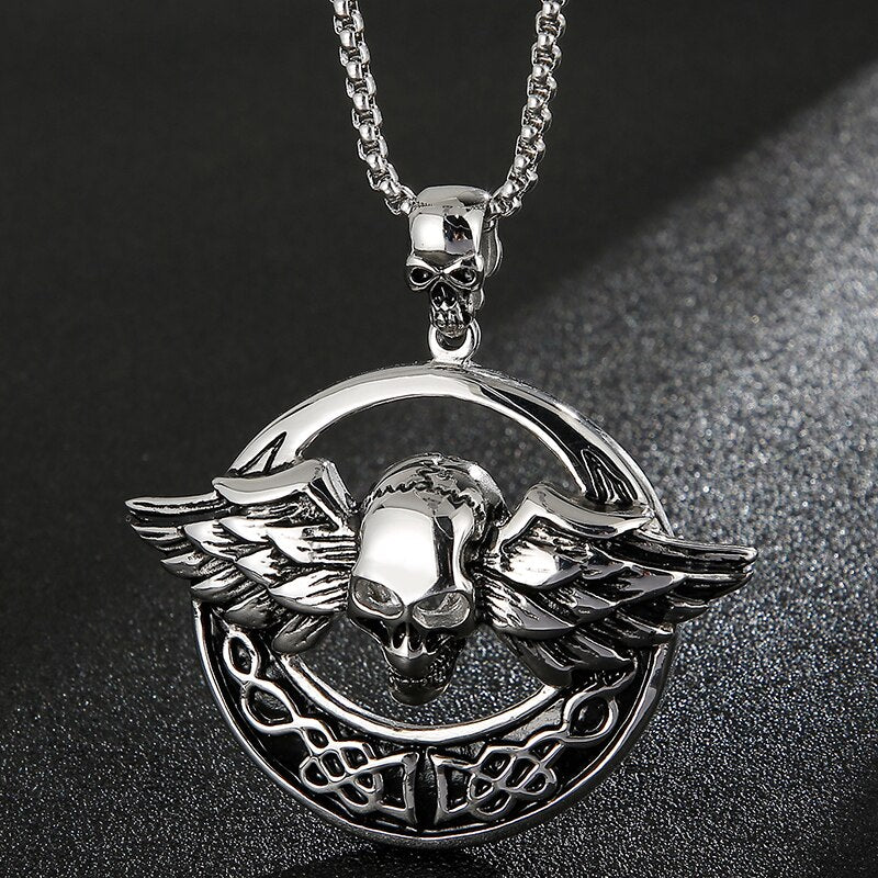 Collar con colgante de calavera punk para hombre con cadena de 60 cm de largo