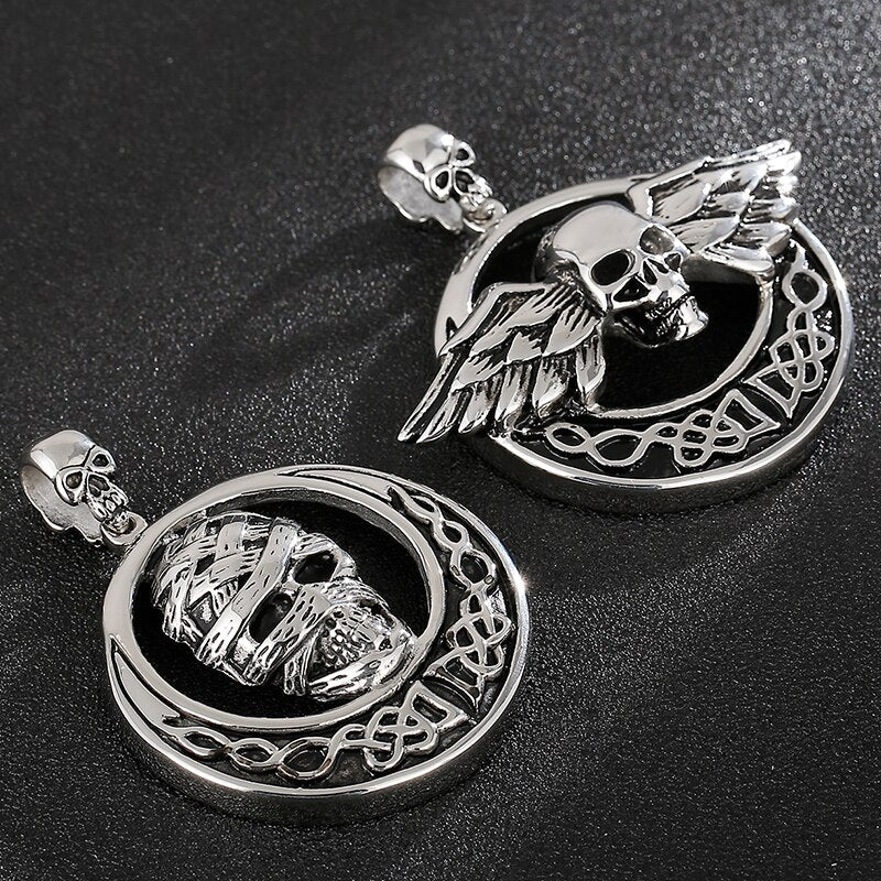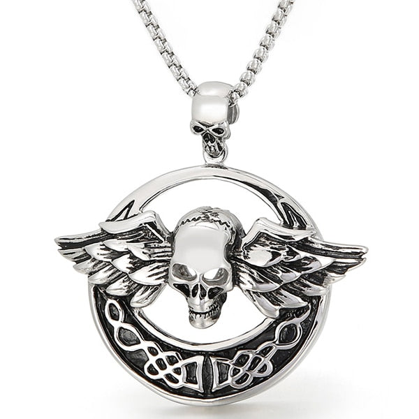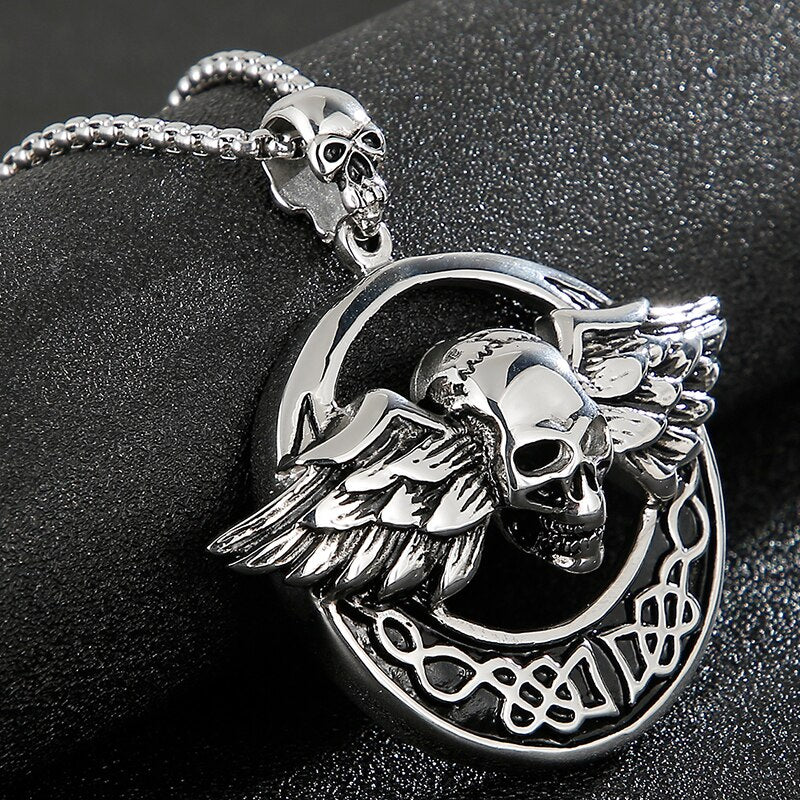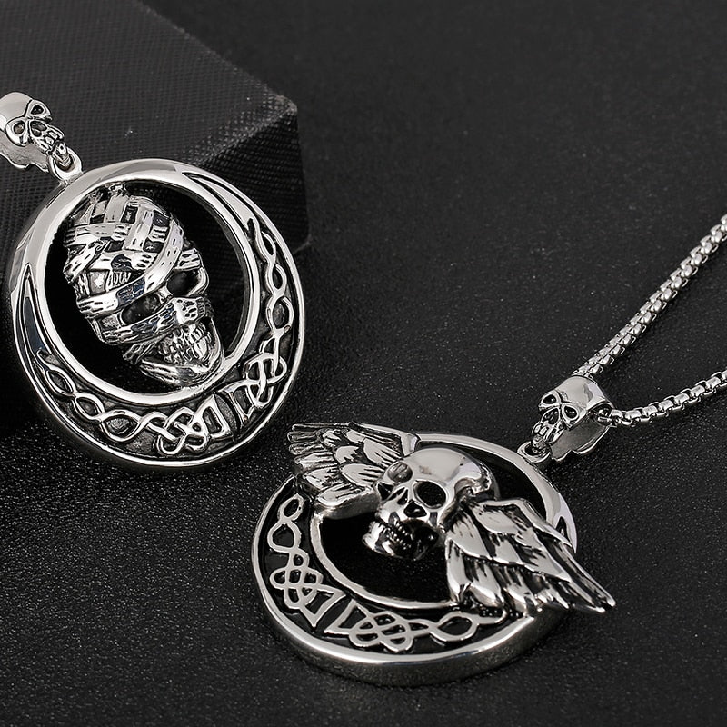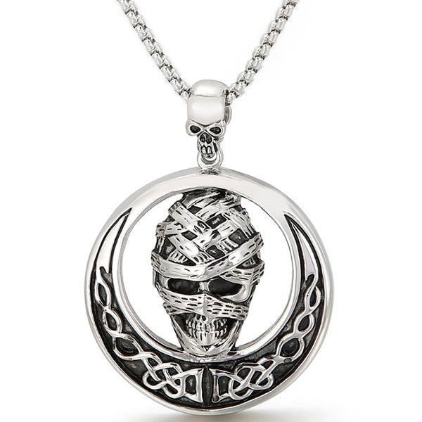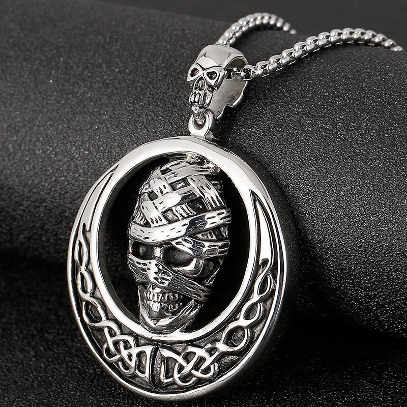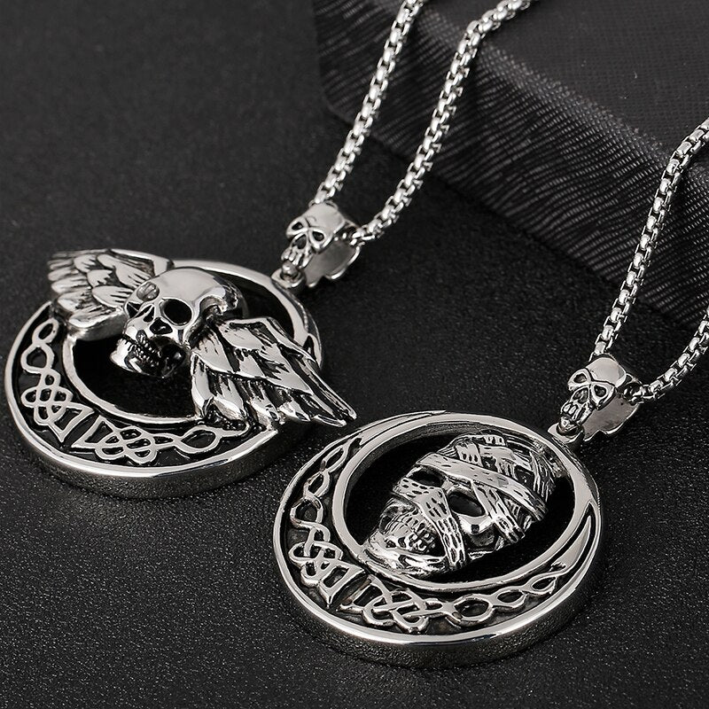 Collar con colgante de calavera punk para hombre con cadena de 60 cm de largo, joyería gótica de acero inoxidable, regalos.