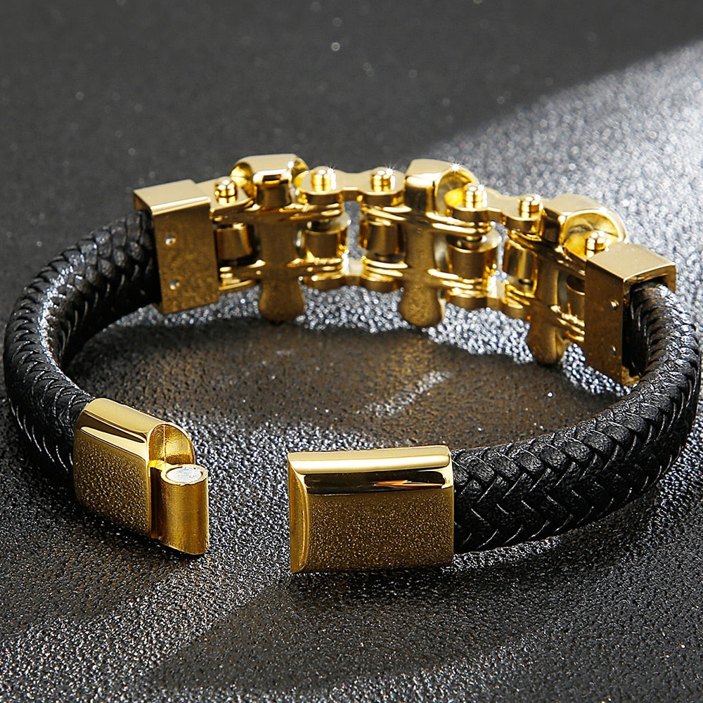 Pulsera de cuero con dijes de calavera punk para hombre con cierre magnético, acero inoxidable chapado en negro, joyería para hombre con grabado.