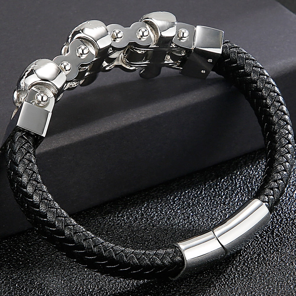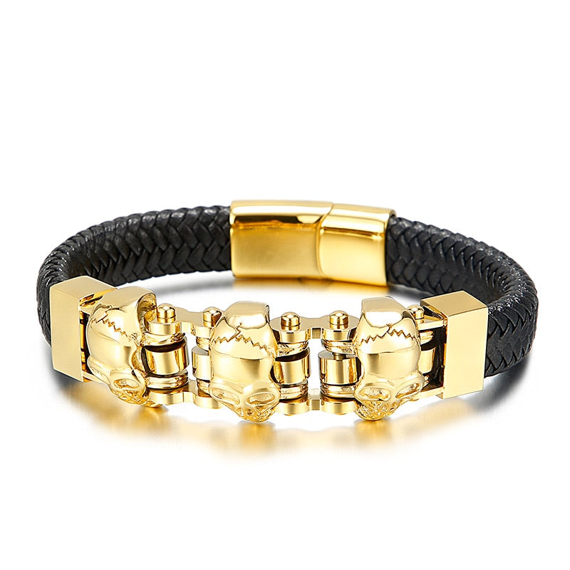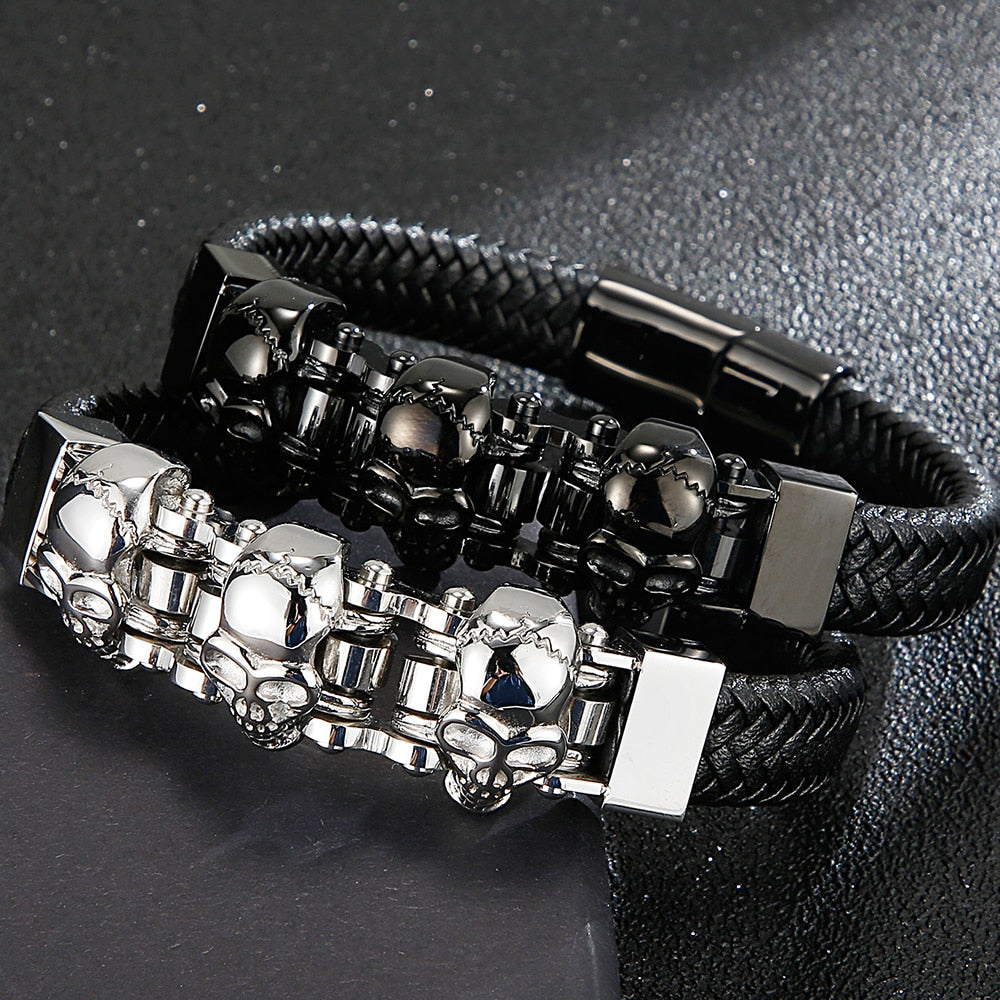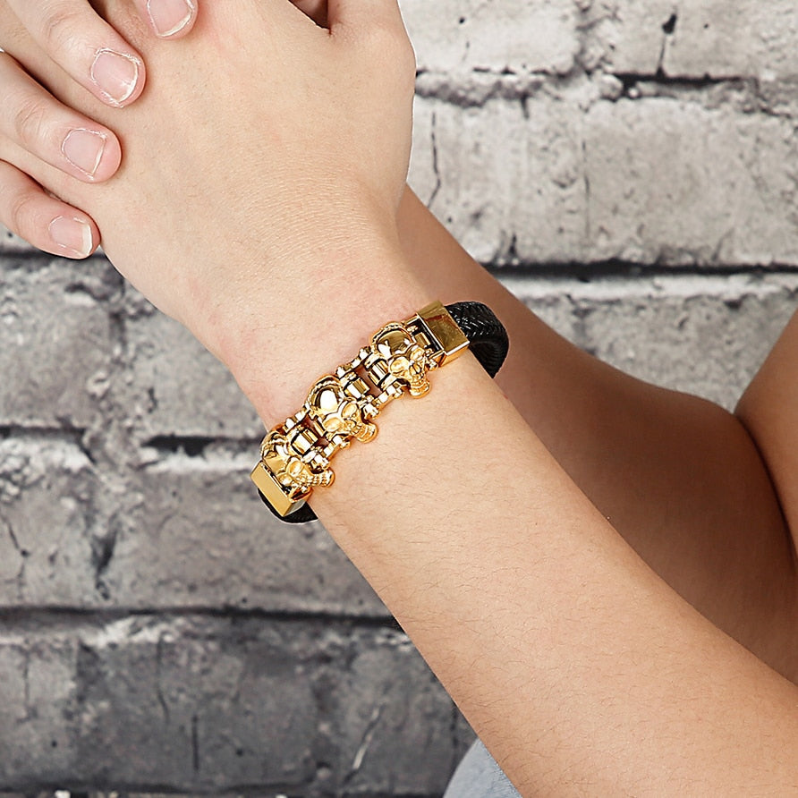 Pulsera de cuero para hombre: Pulseras de calavera para hombre