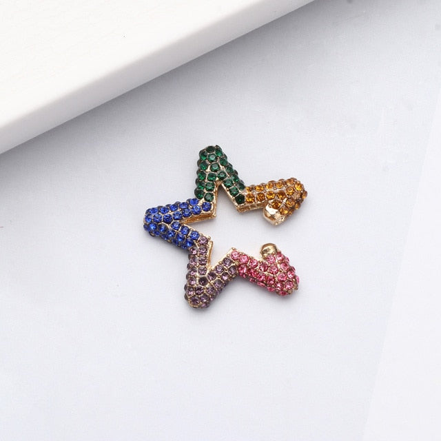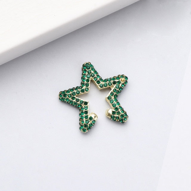 Pendientes de moda: aretes tipo puño con forma de estrella arcoíris para mujer, coloridos, con múltiples aros y diamantes de imitación, estilo bohemio, con forma de corazón romántico. Joyería para mujer.