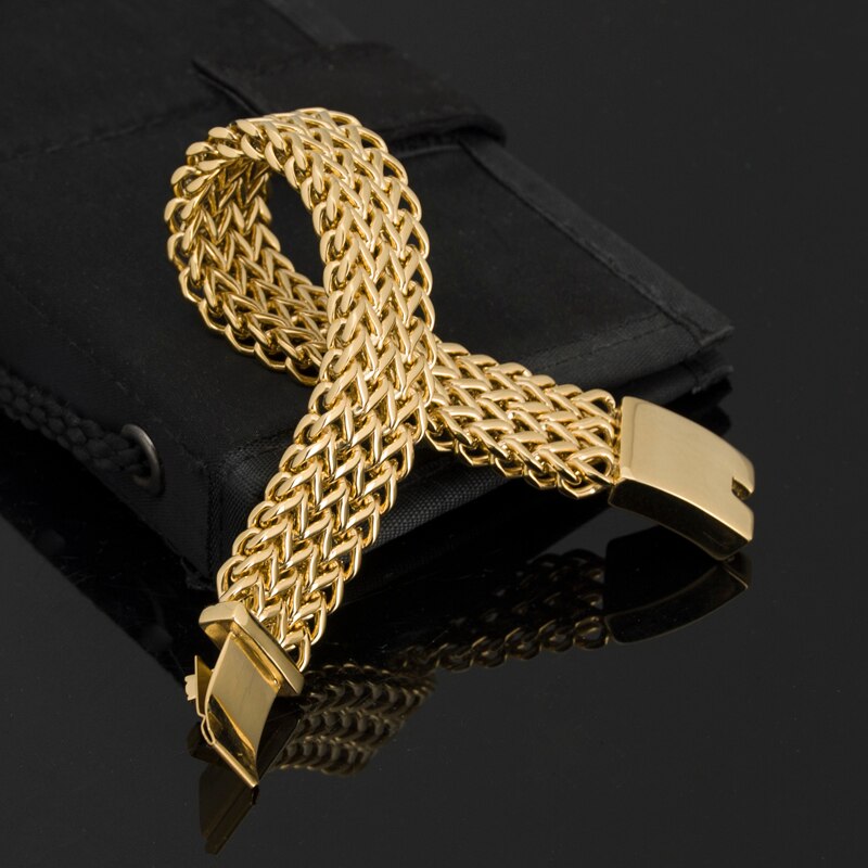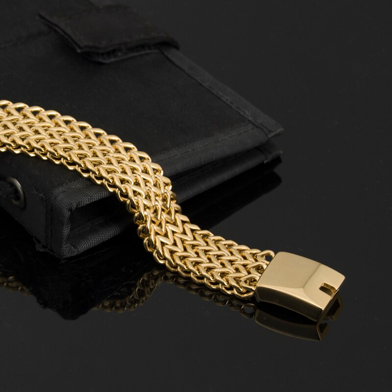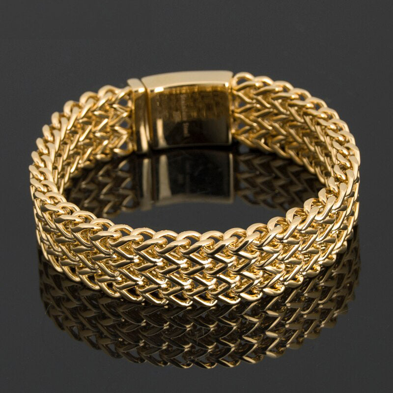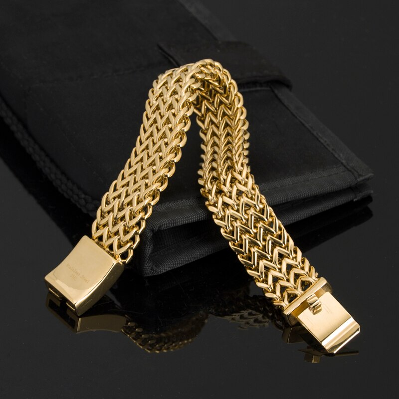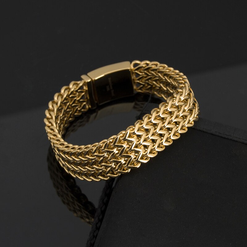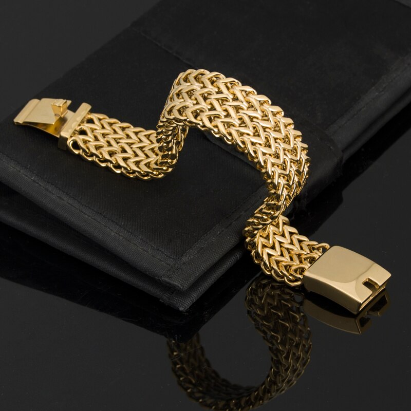 Pulsera de rapero DJ para hombre, de acero inoxidable chapado en oro de lujo, joyería de Dubái, pulseras para hombre.