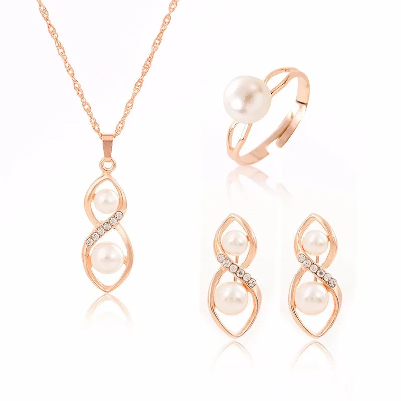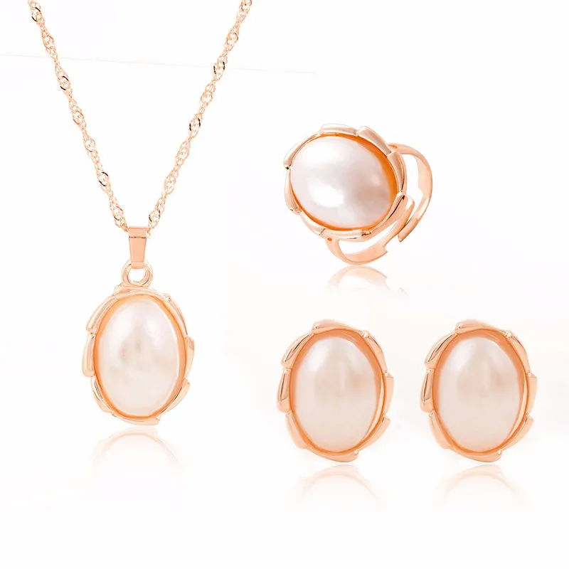 Conjuntos de joyería nupcial: conjuntos de joyería de cristal de circonita cúbica en color dorado rojo/verde, collar de perlas simuladas, pendientes, anillo, gota de agua, joyería azul pavo real.