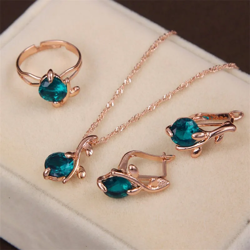 Conjuntos de joyas de cristal de circonita cúbica de color oro rojo/verde