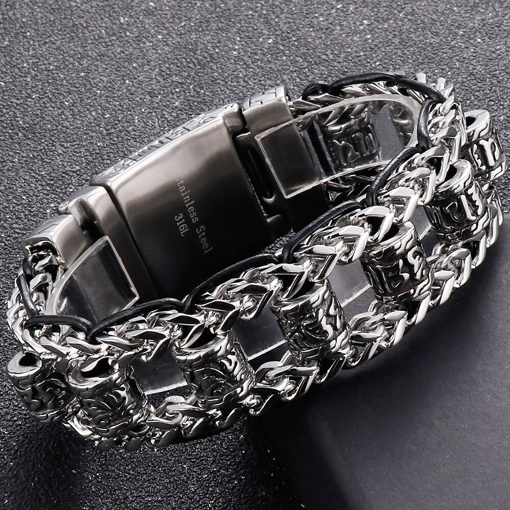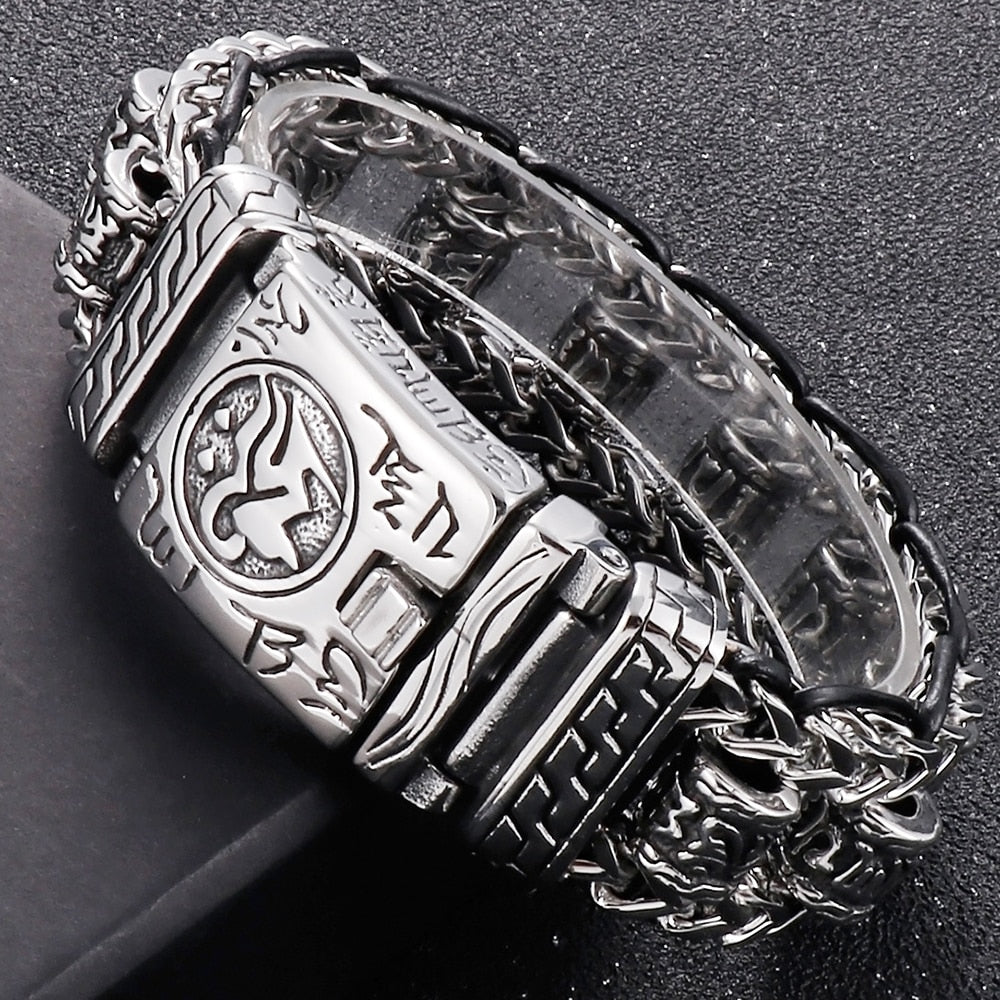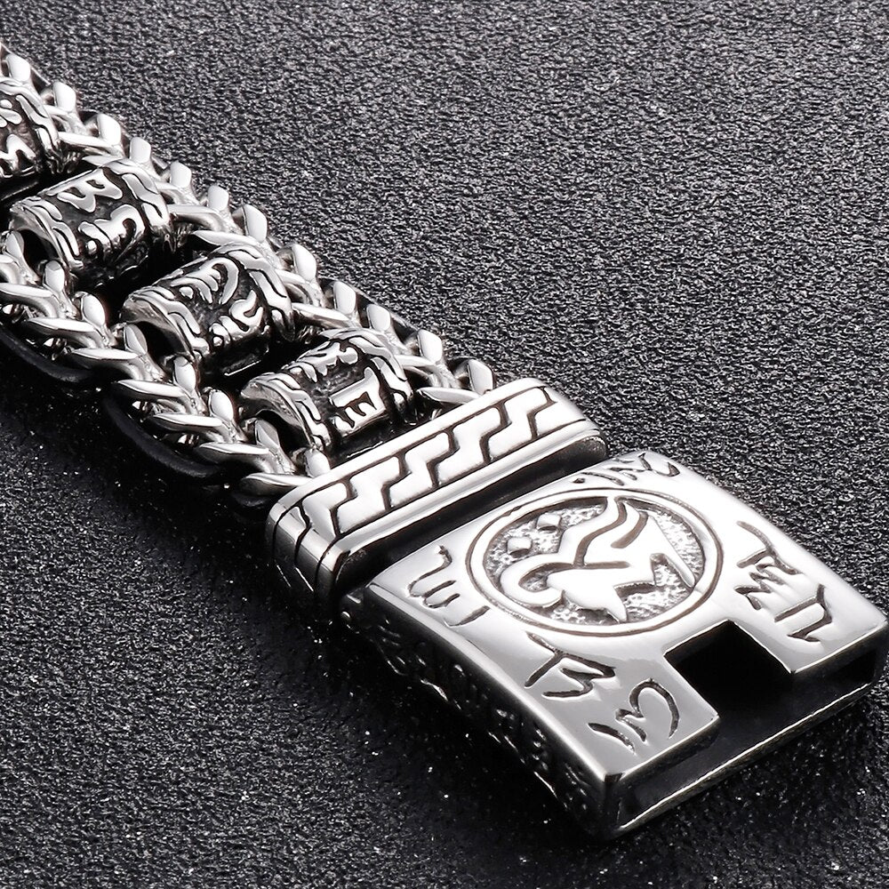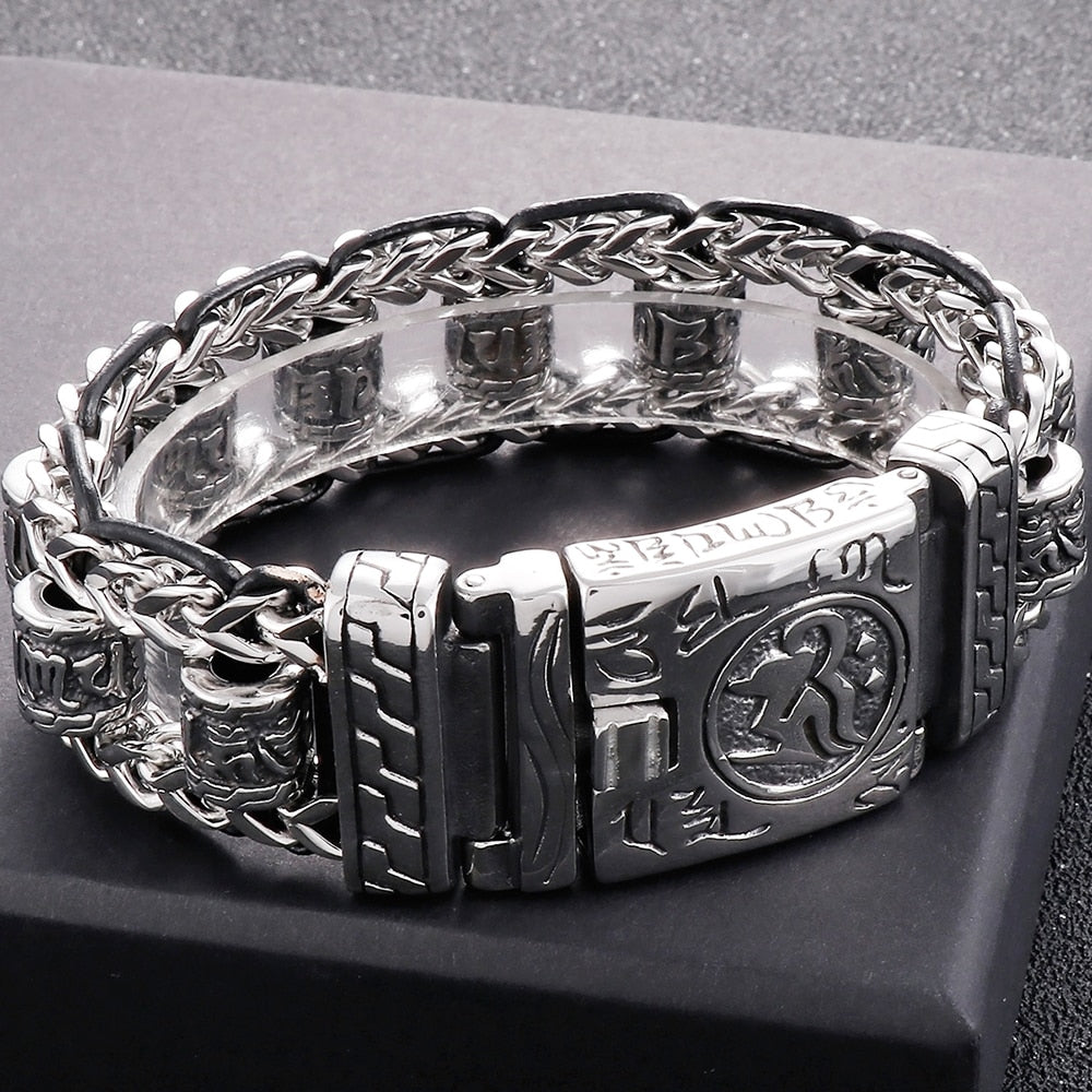 Pulsera religiosa para hombre, acero inoxidable 316L, 22 mm, con eslabones de las escrituras budistas.