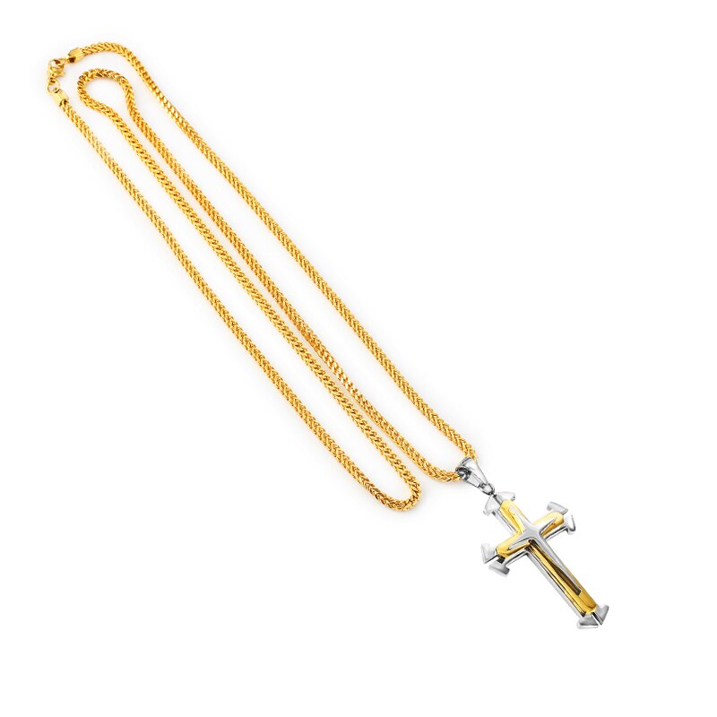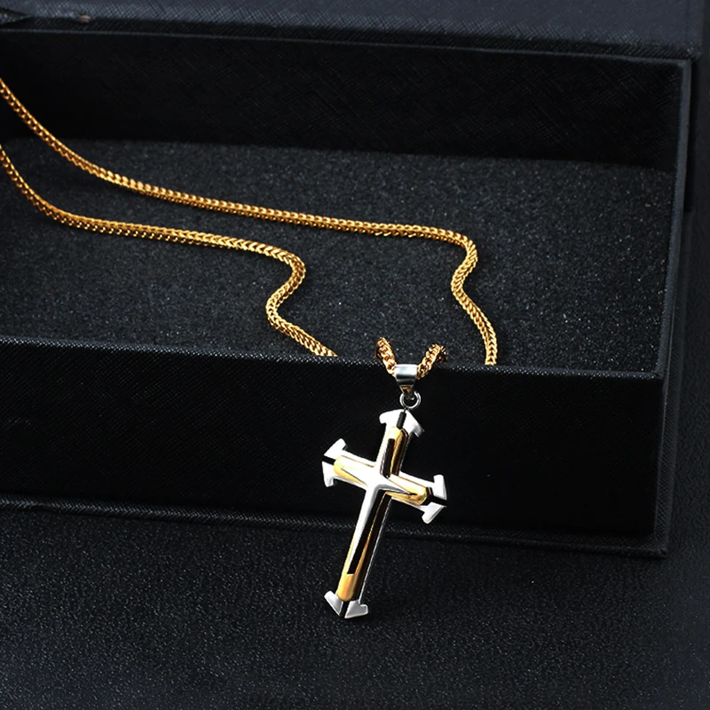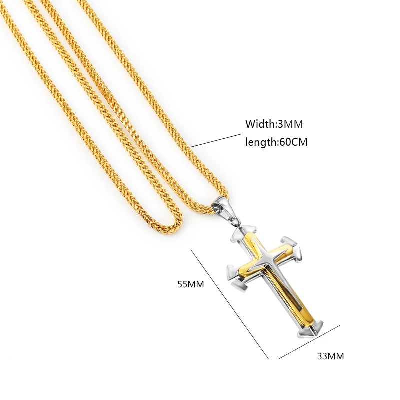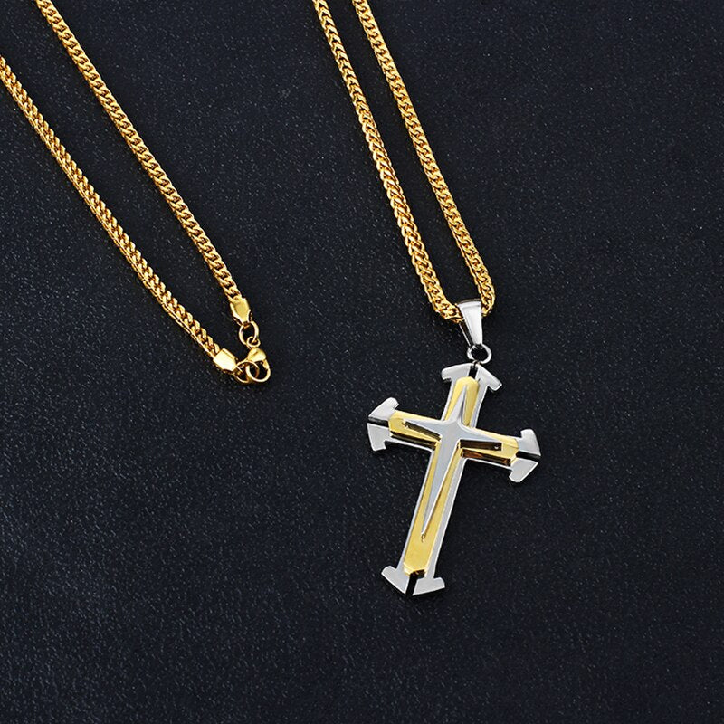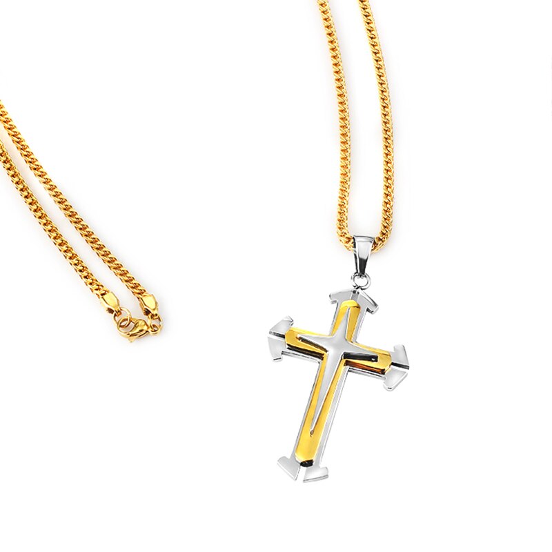 Collar con colgante de cruz religiosa de color dorado para mujeres y hombres, cadena positiva y negativa de metal, acero inoxidable 316L, joyería de moda.
