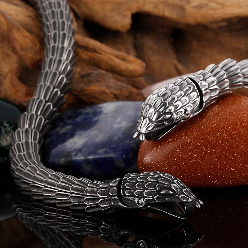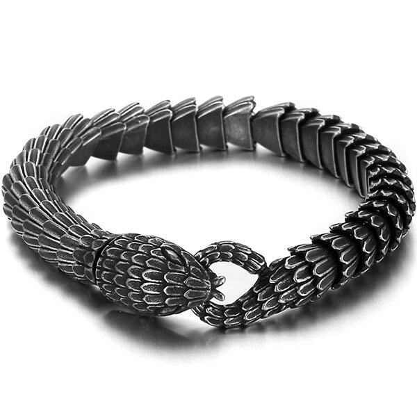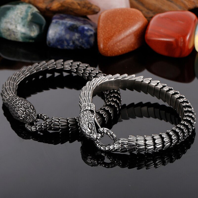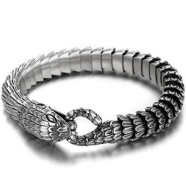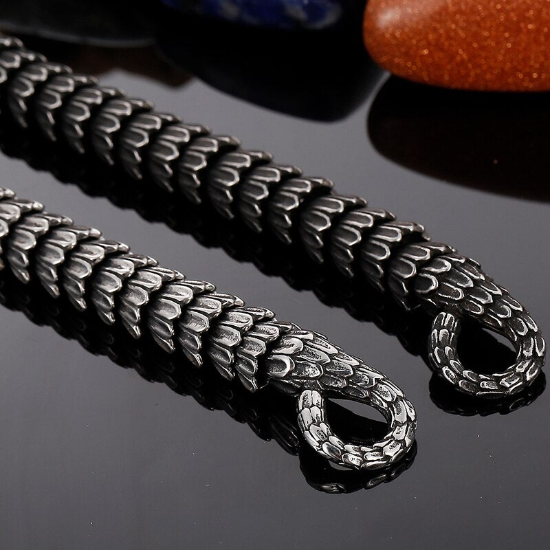 Pulsera retro de acero inoxidable 316L con escamas de serpiente para hombre