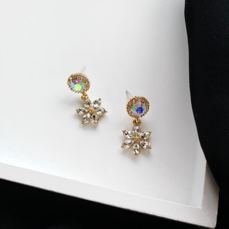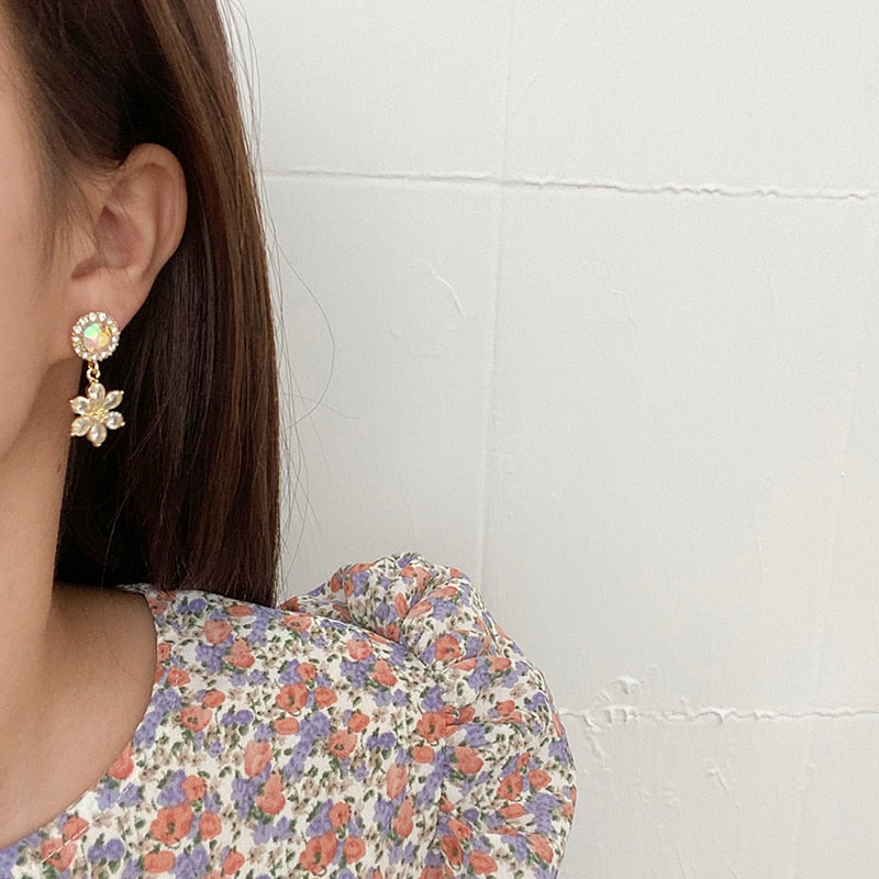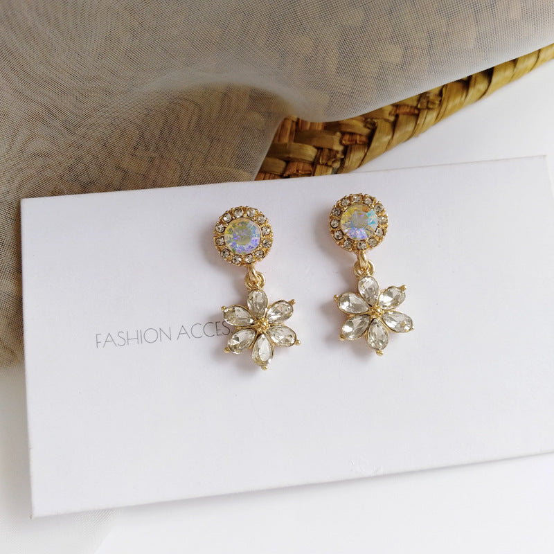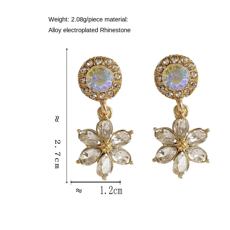Pendientes de moda - 2022 Nuevo estilo coreano Elegantes y exquisitos pendientes para niña Retro Barroco Brillante con flores de diamantes de imitación Pendientes de clip sin perforación