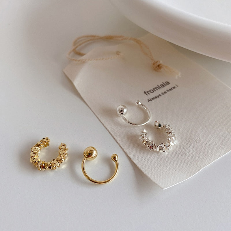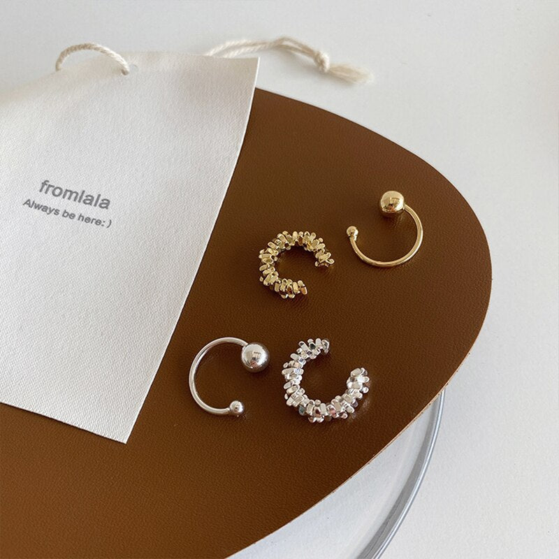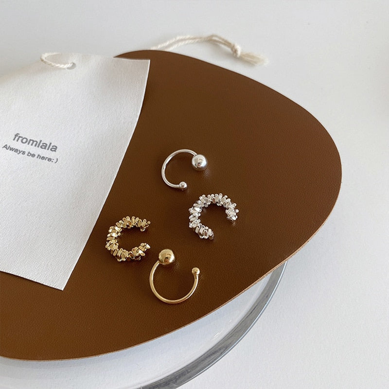 Pendientes de moda: Juego de pendientes de clip de hueso de oreja irregulares de metal de corte retro 2022, pendientes de oreja de tendencia para mujer, piercing falso simple y salvaje, joyería para las orejas.