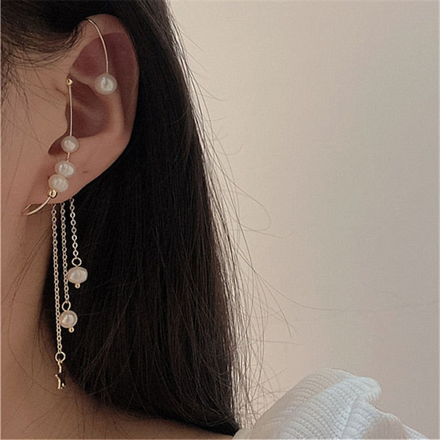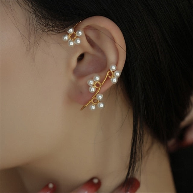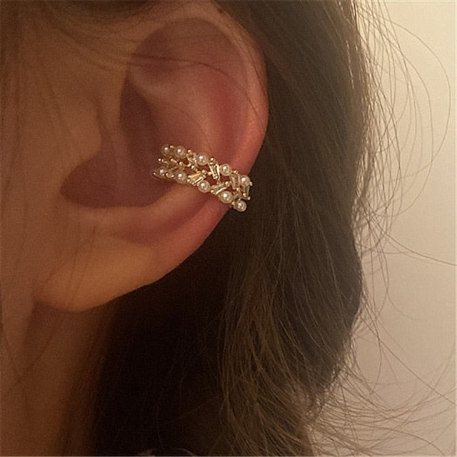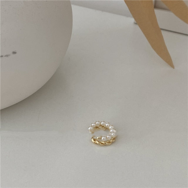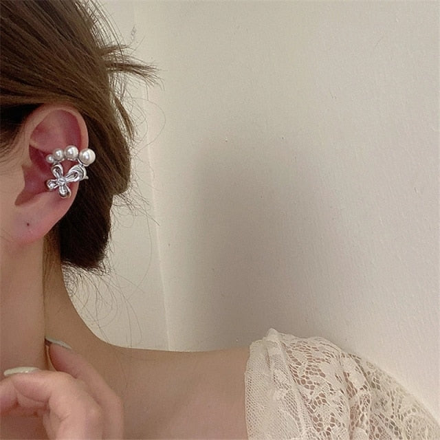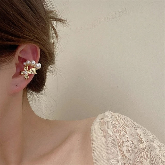 Clip para oreja de perla natural barroca irregular, elegante y retro, sin perforación