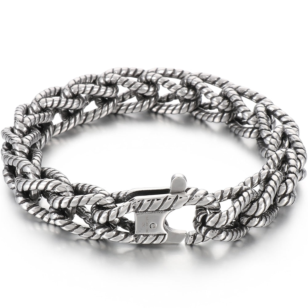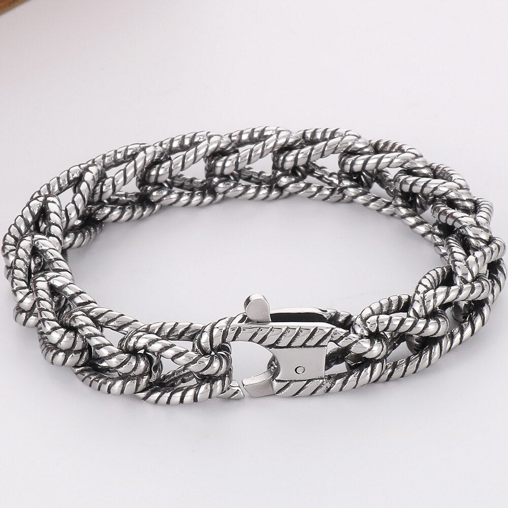 Pulsera de acero inoxidable 316L con eslabones y cadenas torcidas para hombre