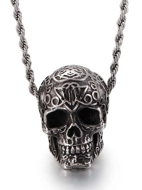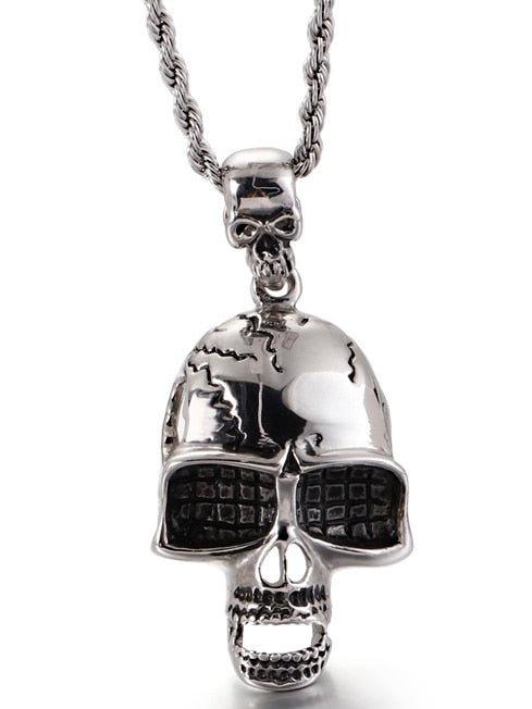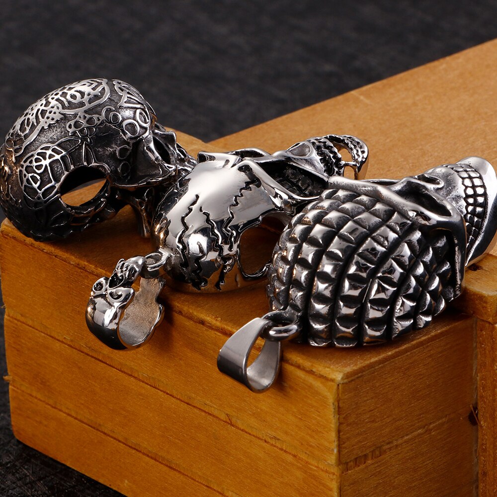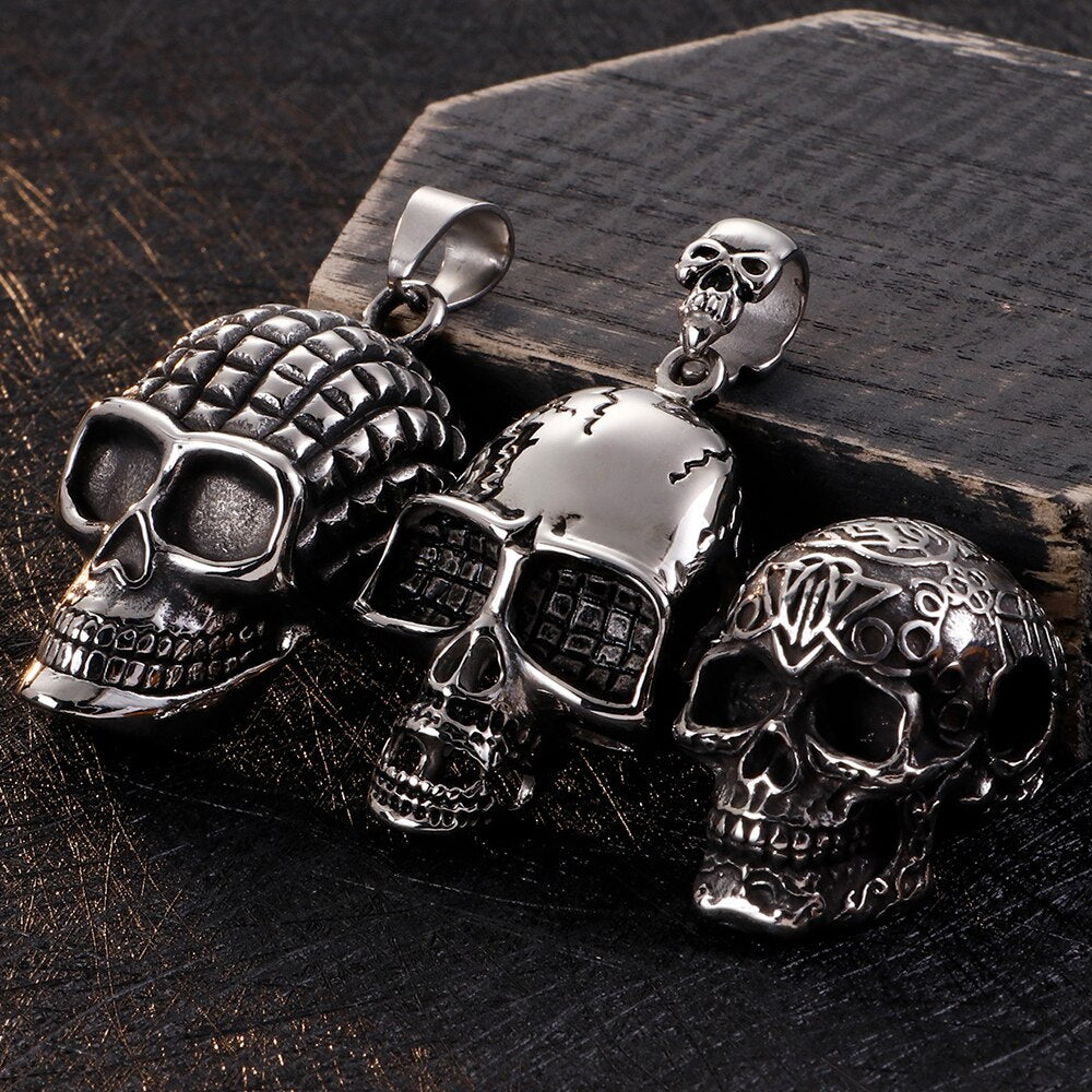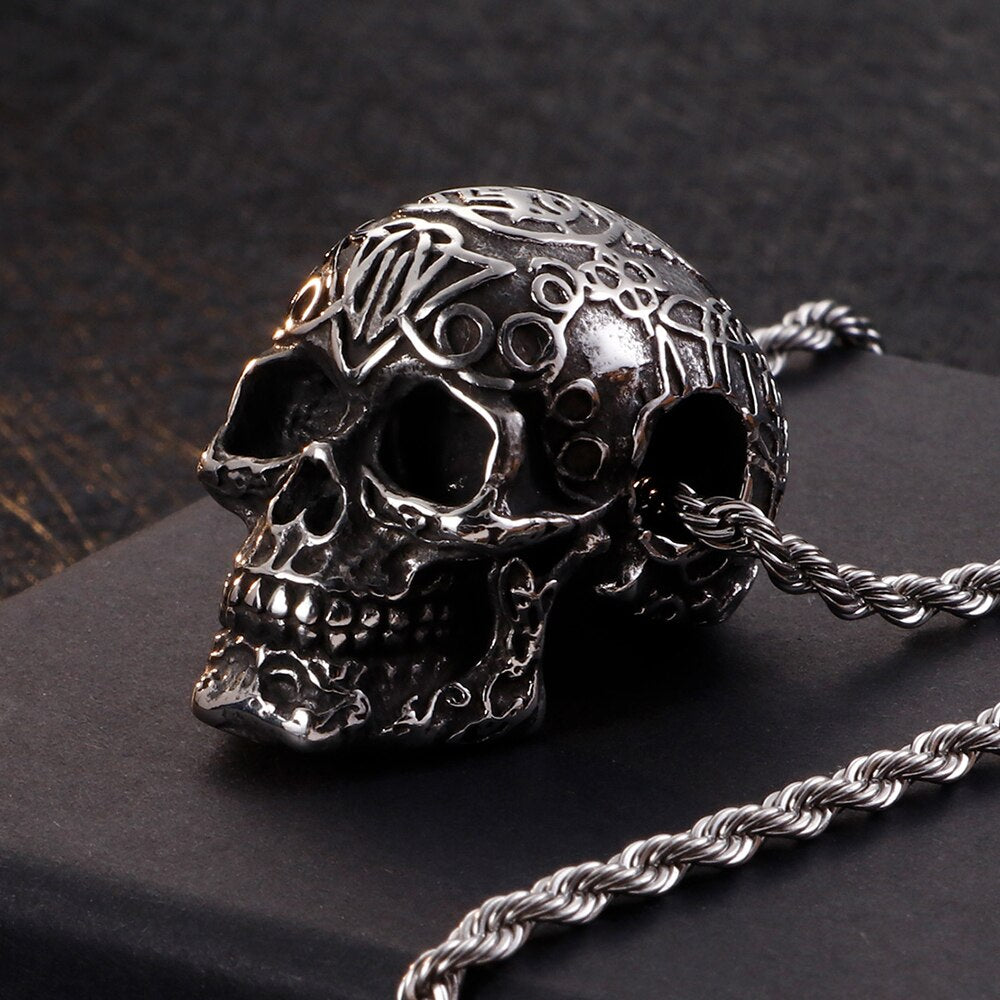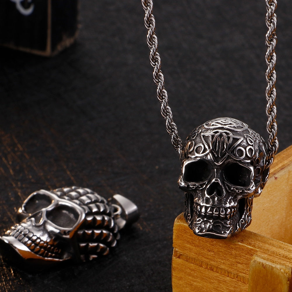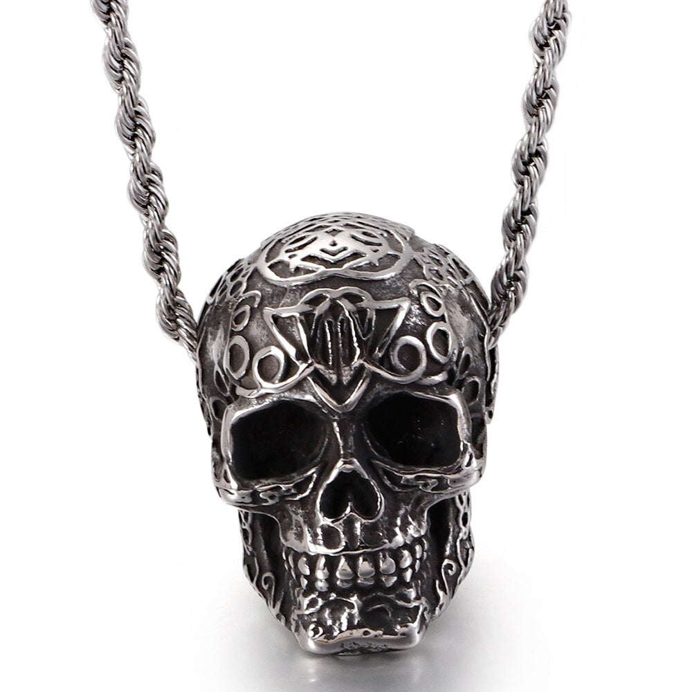 Collar con colgante de calavera punk retro para hombre, accesorios de Halloween, joyería gótica de acero inoxidable para motociclista.