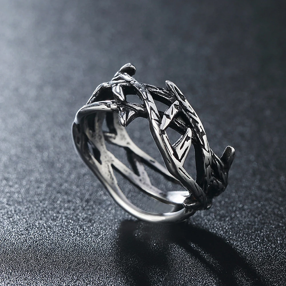 Nombre: Anillo de acero inoxidable con diseño de rama de olivo y paz retro para hombre, estilo punk, simple y creativo, con espinas para motociclista, regalo de joyería.