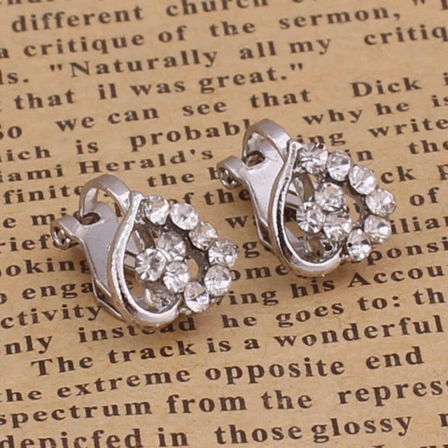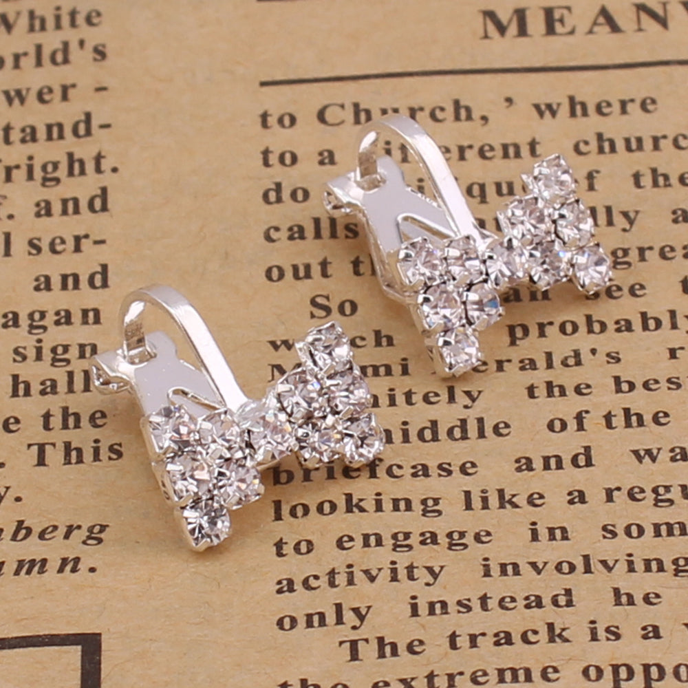 Pendientes de moda con forma de corazón, corona y cristales de estrás, geométricos, sin perforaciones, para niñas y niños, bonitos pendientes de clip, hipoalergénicos.