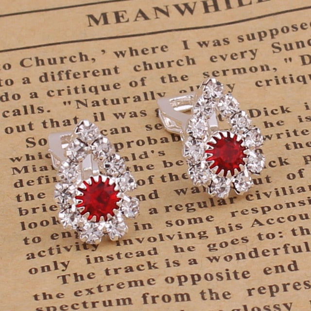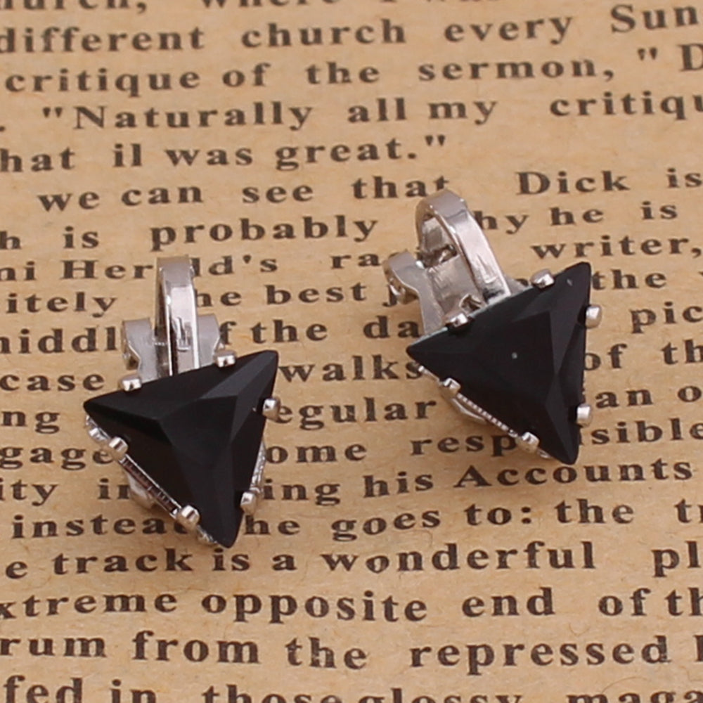 Pendientes de clip geométricos con corona de corazón de cristal y diamantes de imitación, sin perforar