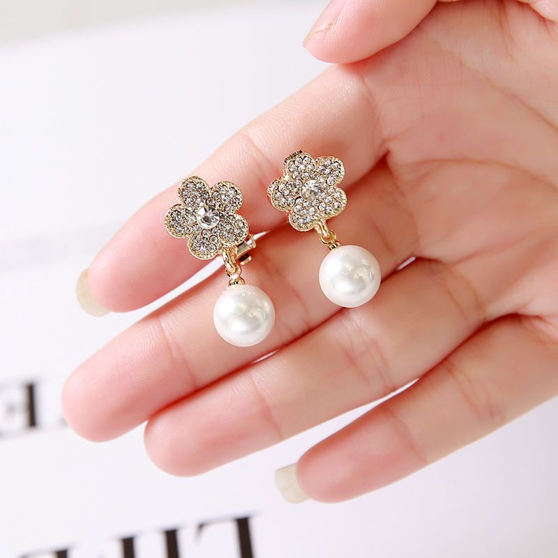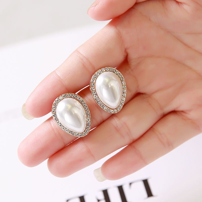 Pendientes de moda: pendientes geométricos de cristal con perlas de imitación de alta calidad con clip, sin perforaciones, para mujer, de lujo, sin agujeros, para bodas.