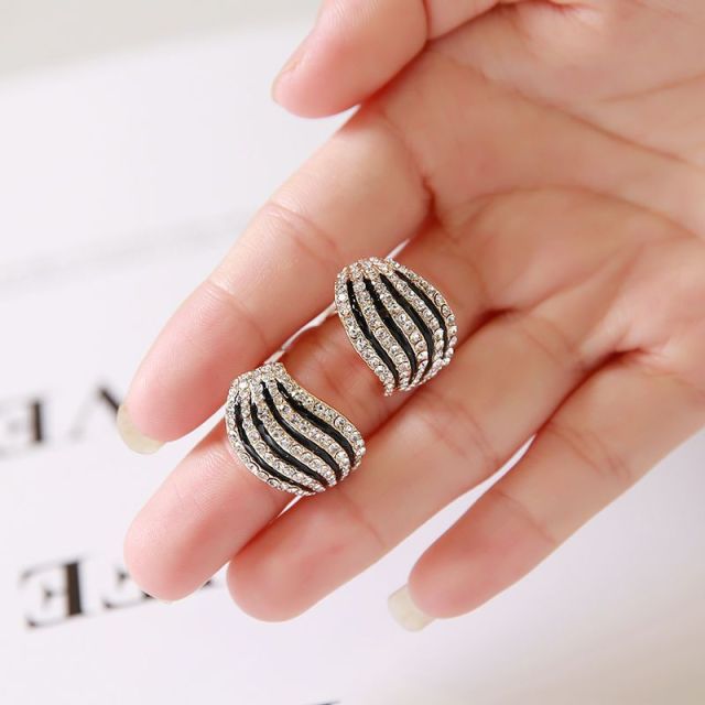 Pendientes de clip con forma geométrica de cristal y perla de diamantes de imitación, sin perforaciones