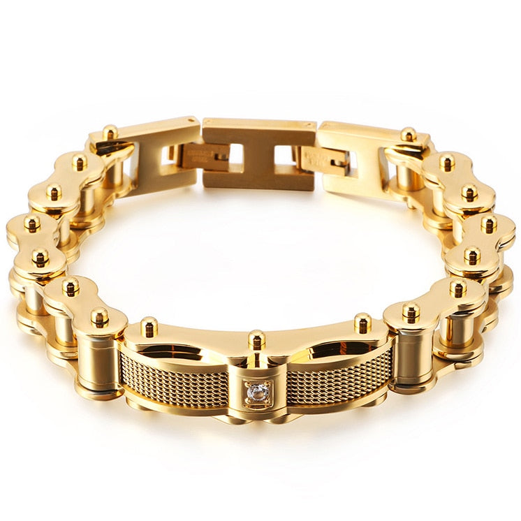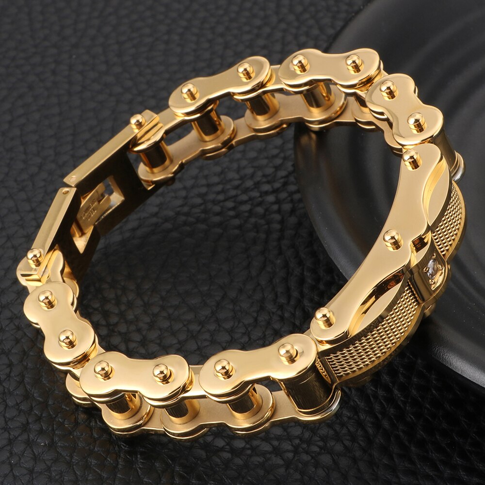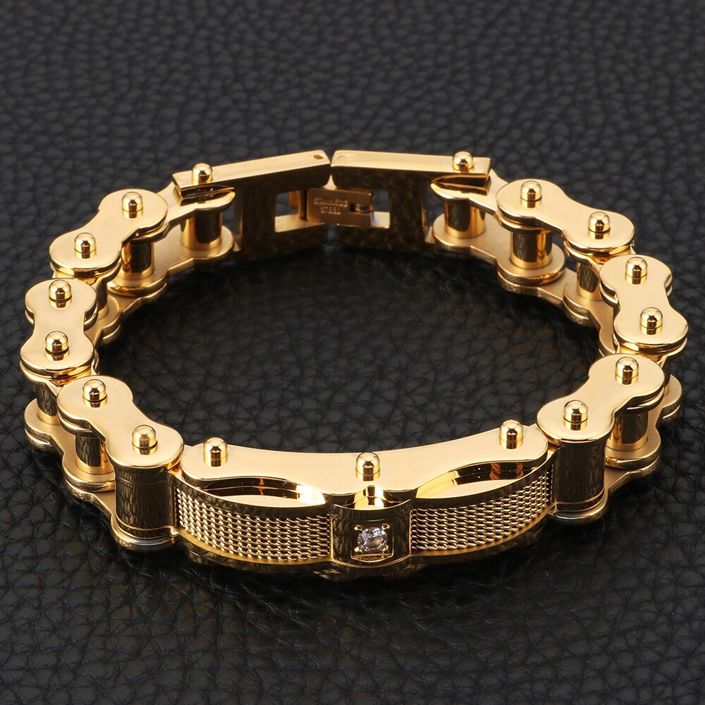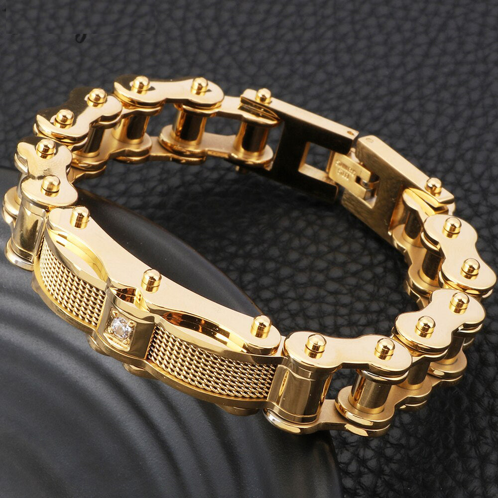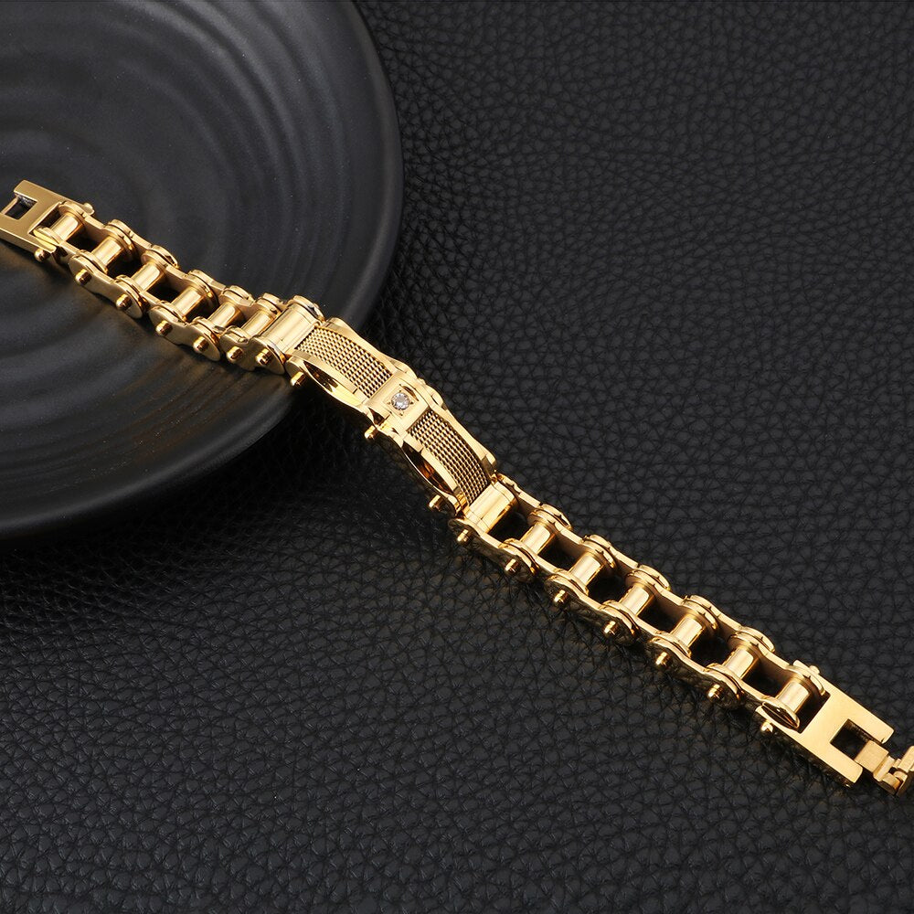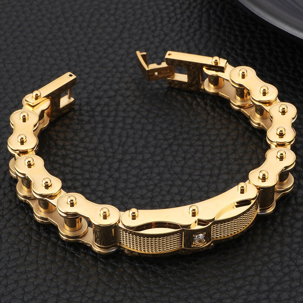 Pulsera de cadena de eslabones de bicicleta Rock and Roll de 15 mm para hombre, joyería de motociclista, pulsera de acero inoxidable para hombre con circonita cúbica, regalo para mejores amigos.