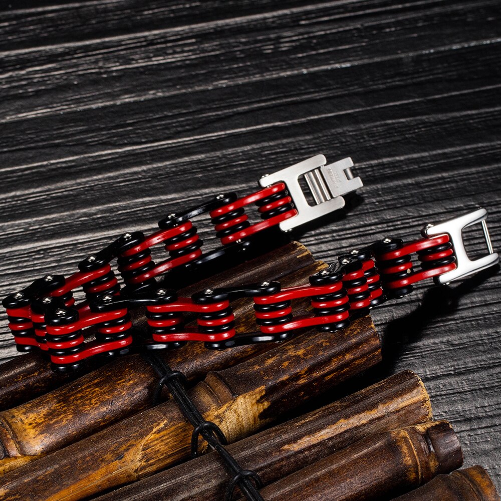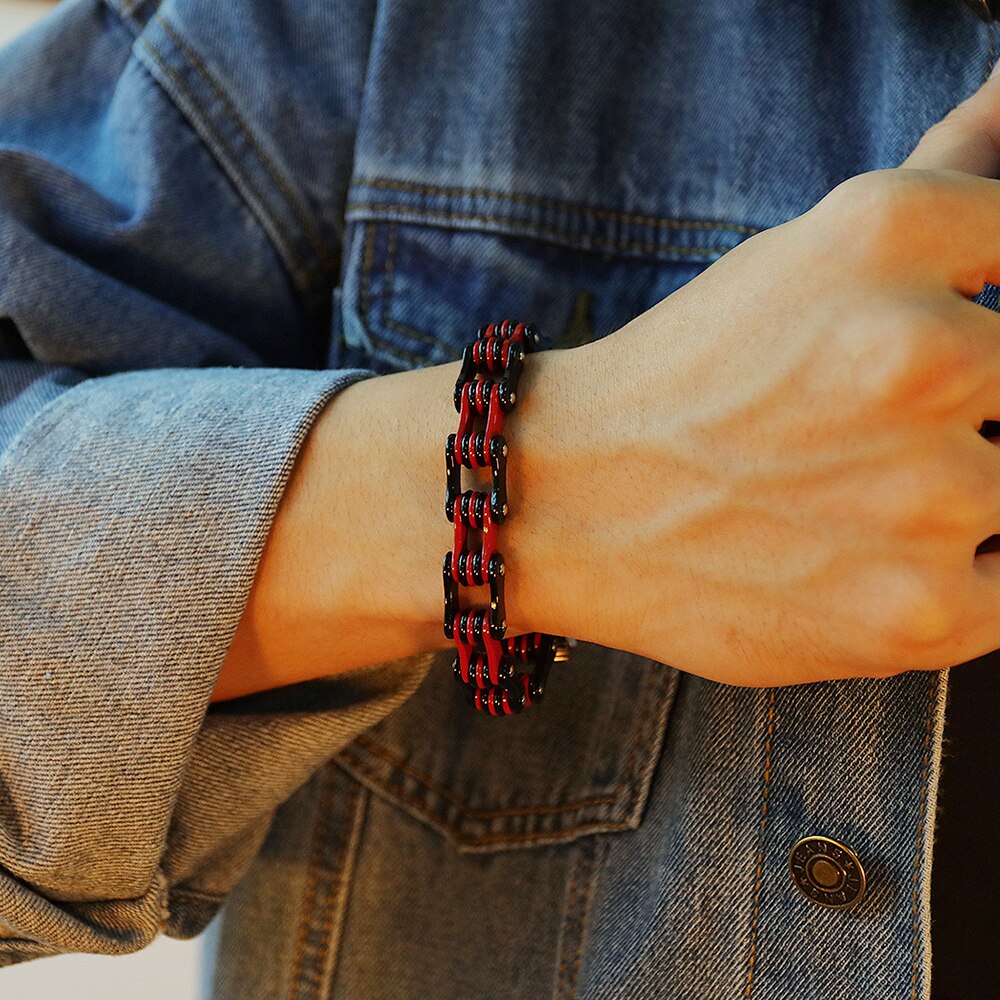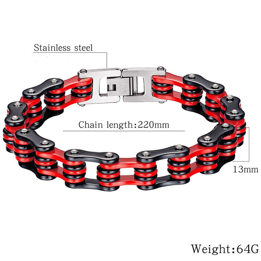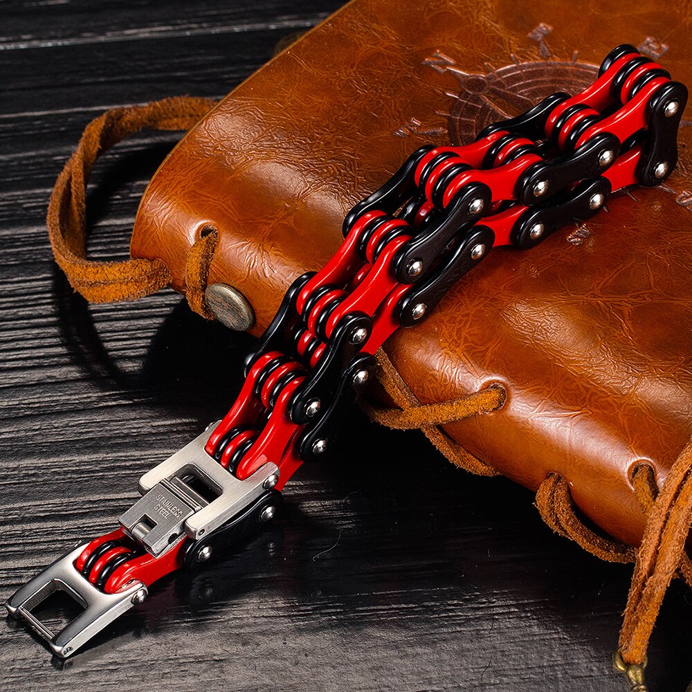 Pulsera de cadena de bicicleta Rock and Roll para hombre, de acero inoxidable, color rojo, con cadena de motocicleta.