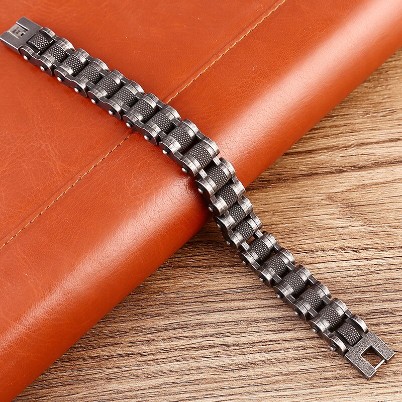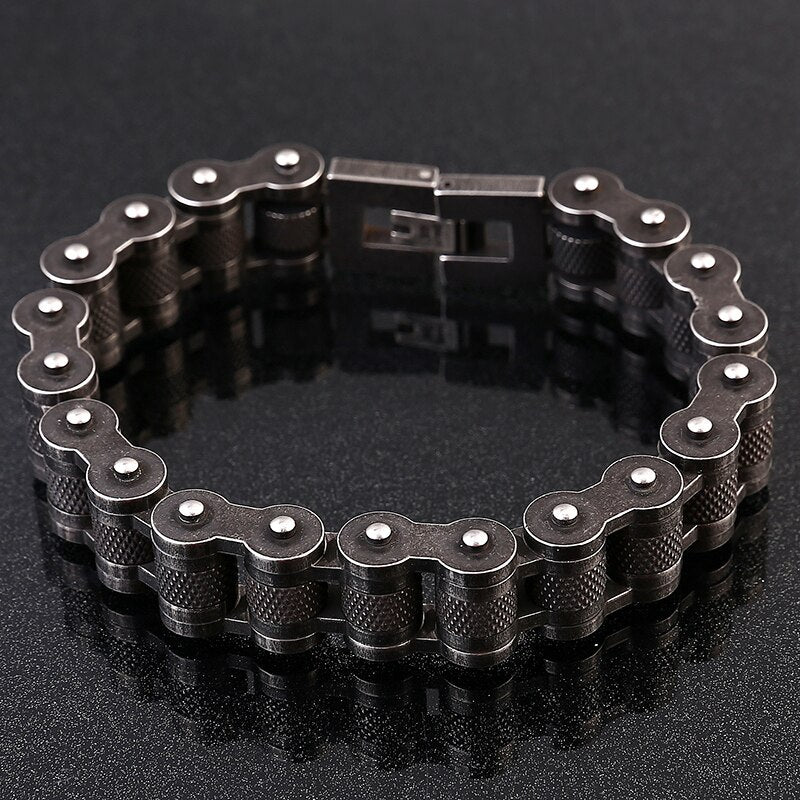 Pulsera de motociclista Rock and Roll para hombre, joyería de acero inoxidable, cadena de eslabones de motocicleta de 13 mm de ancho