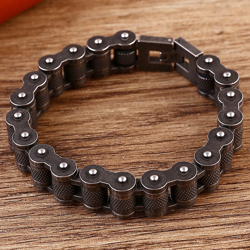 Pulsera de motociclista Rock and Roll para hombre, joyería de acero inoxidable de 13 mm de ancho, cadena de eslabones para motocicleta, pulseras para hombre de 8,5 pulgadas
