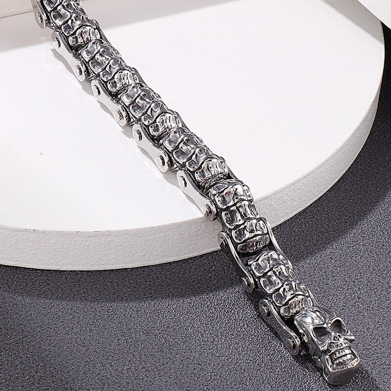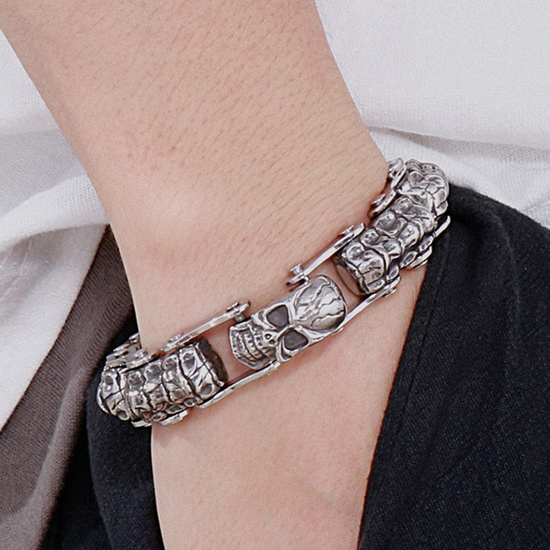 Pulsera de calavera de acero inoxidable para hombre con diseño de rock and roll.