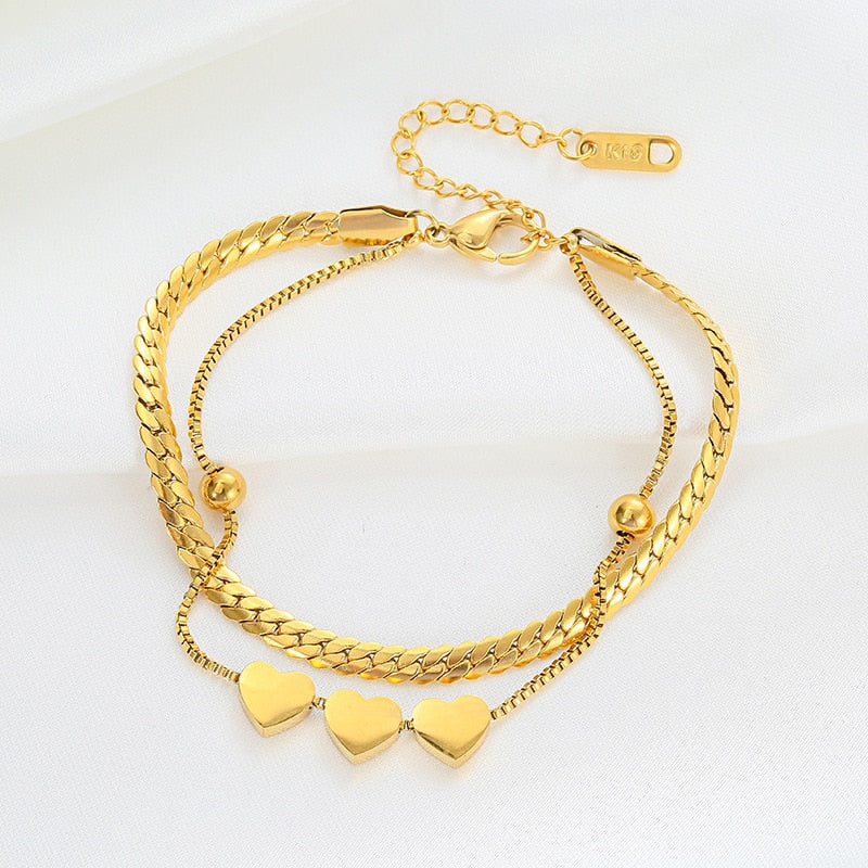 Pulsera de acero inoxidable con forma de corazón romántico para mujer, joyería de oro 585, con dije de cadena de serpiente en capas, ideal como regalo para novia.