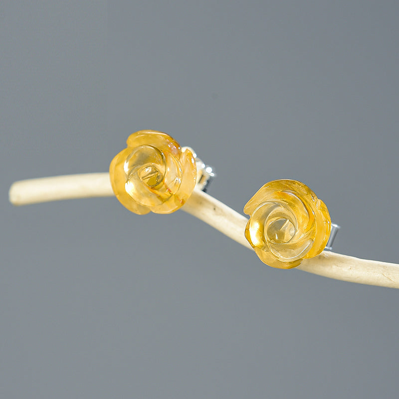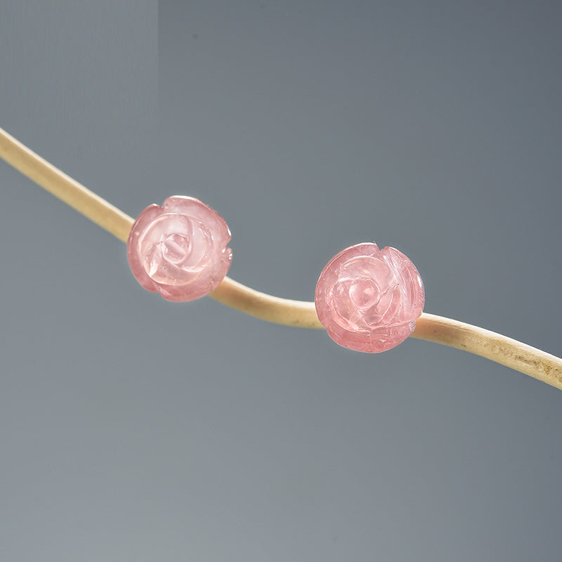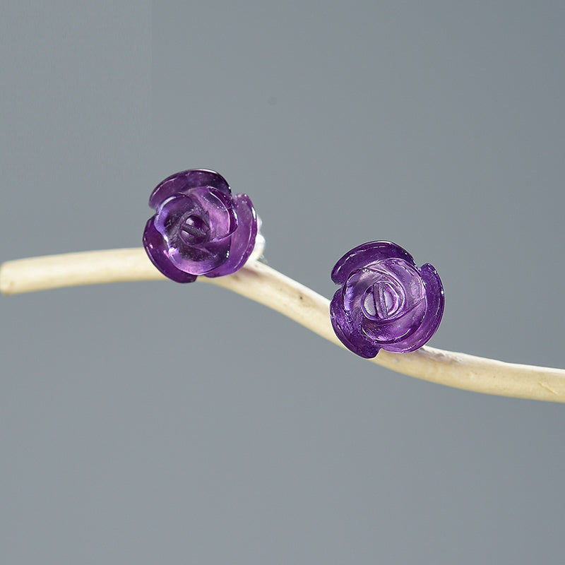 Pendientes de moda: románticos pendientes de botón de cuarzo natural, amatista y flor de rosa, joyería fina de plata de ley 925 auténtica para mujer.