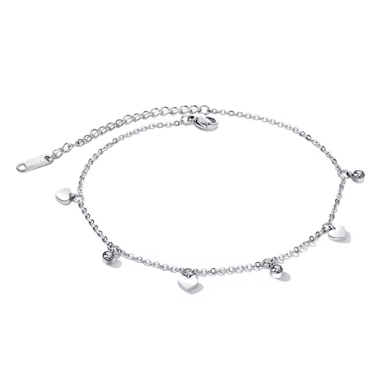 Tobilleras - Tobilleras bohemias con dije de corazón de amor, joyería para el pie, color oro rosa, acero inoxidable, tobilleras con cristales de circonita cúbica para mujeres y niñas