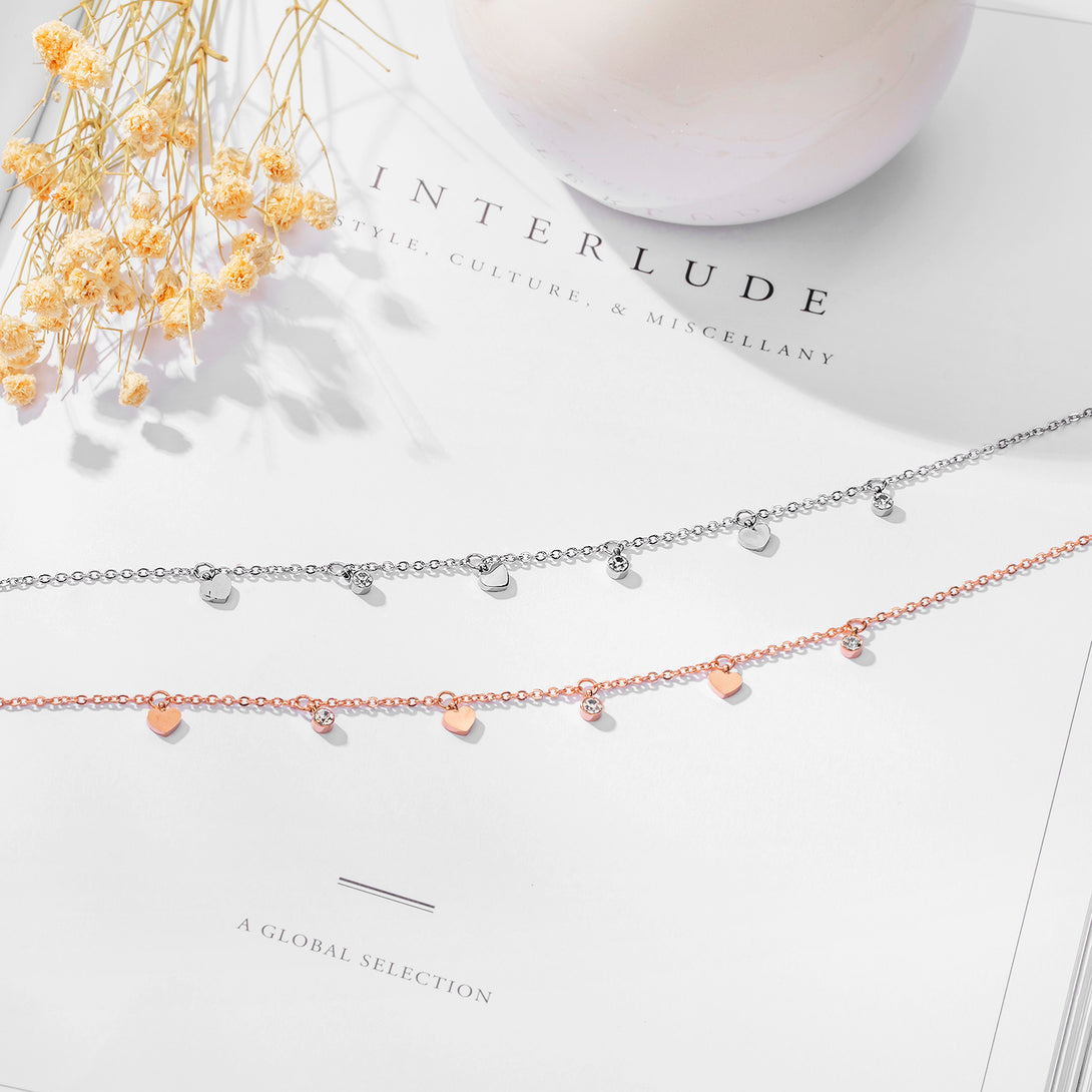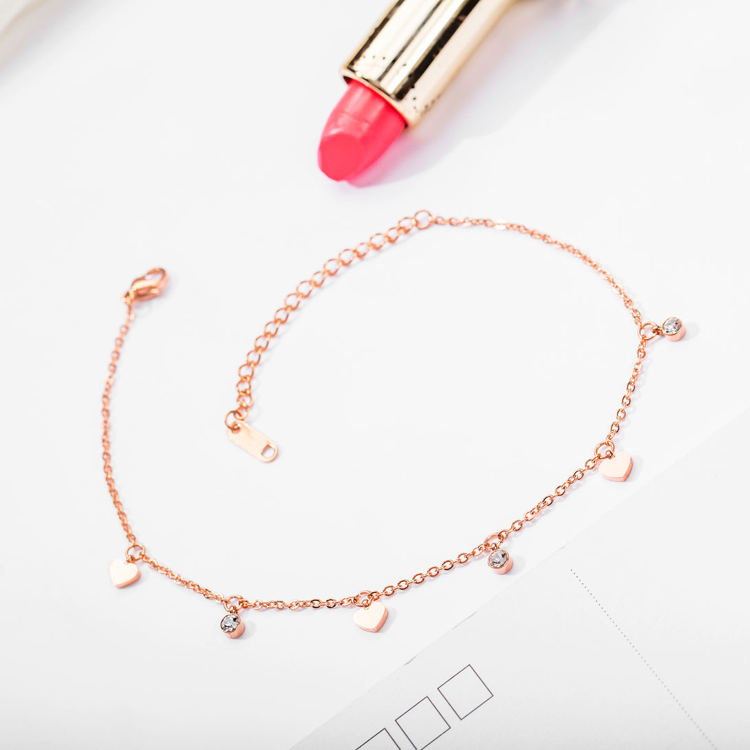 Tobilleras de acero inoxidable color oro rosa con cristales CZ para mujeres y niñas