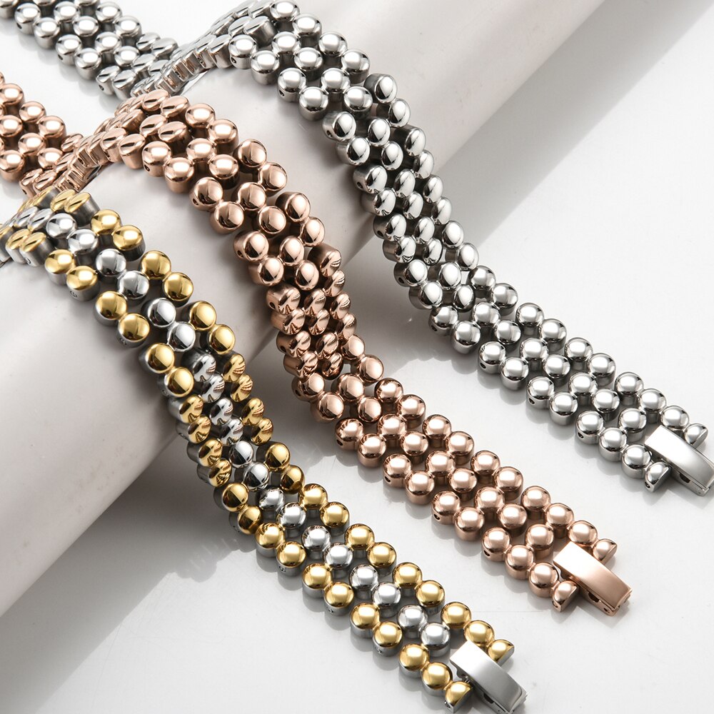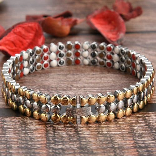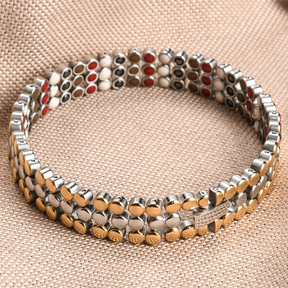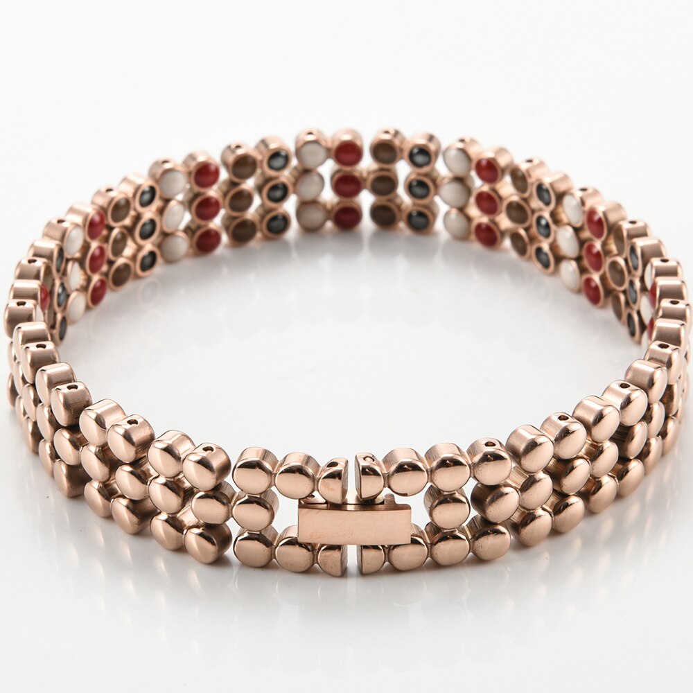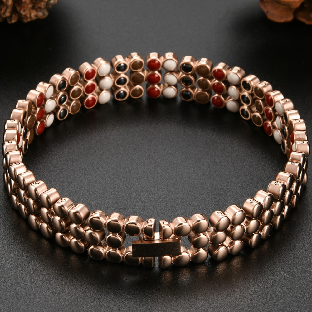 Pulsera de terapia magnética de acero inoxidable chapada en oro rosa para hombres y mujeres