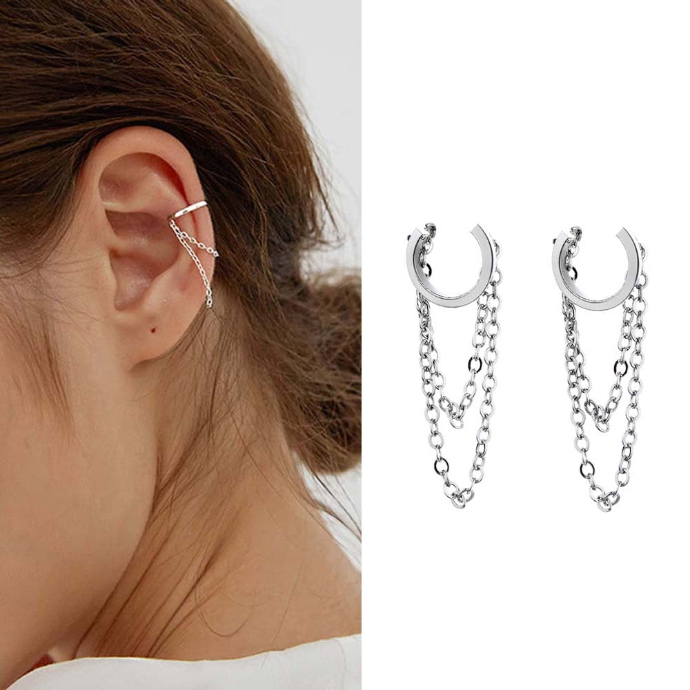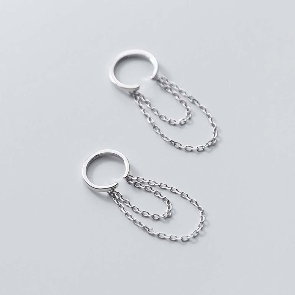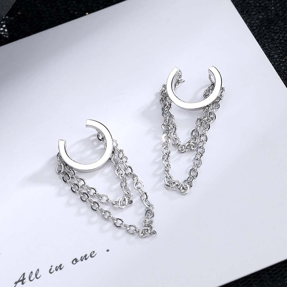 Pendientes de borla con cadena y clip en forma de puño de oreja, sin perforaciones y círculos redondos